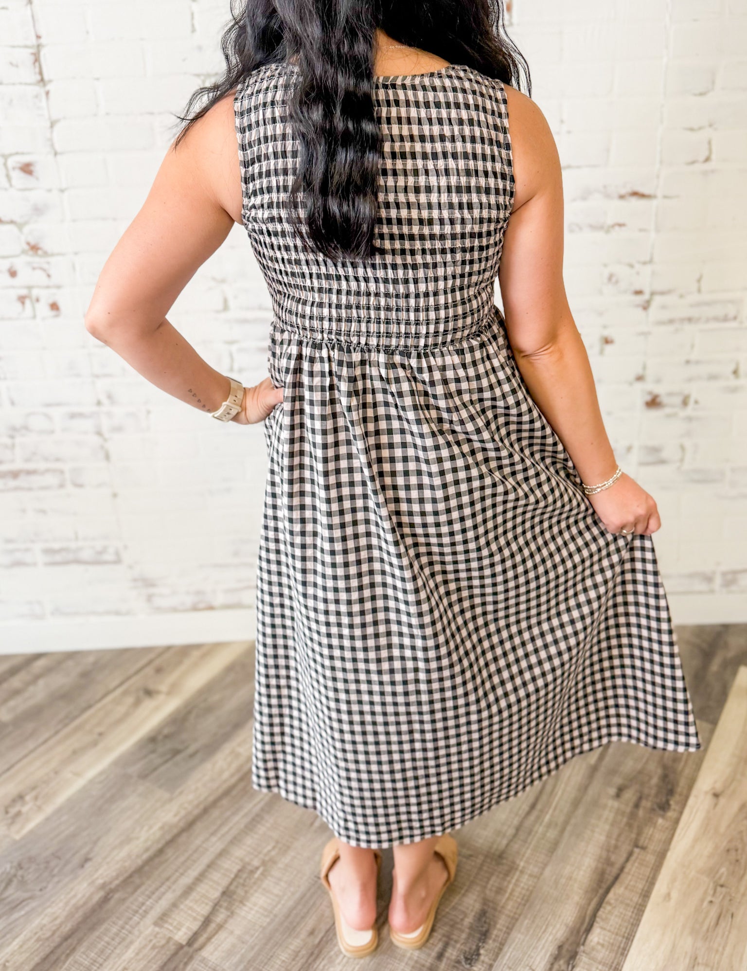 Smocked Gingham Sleeveless Midi Dress