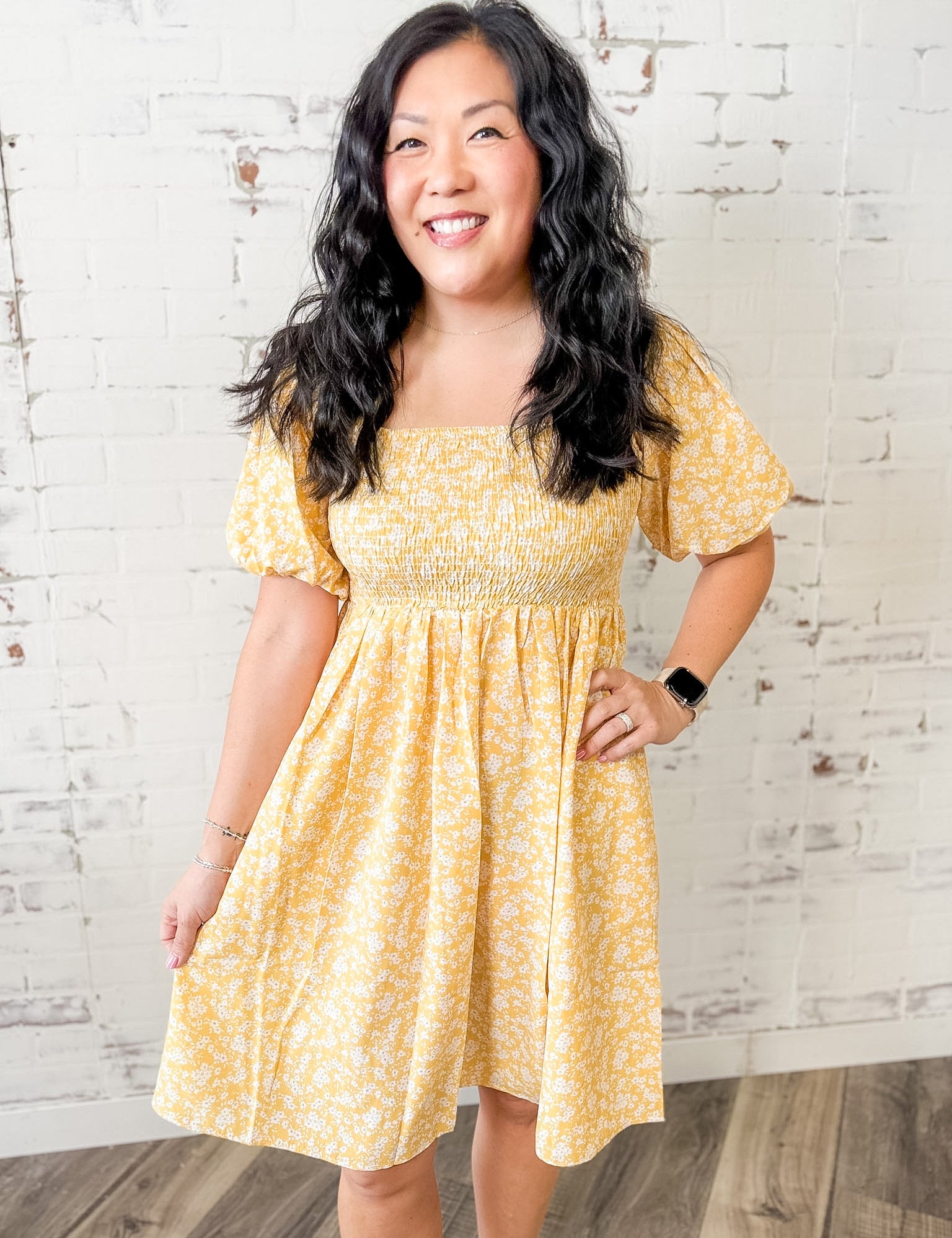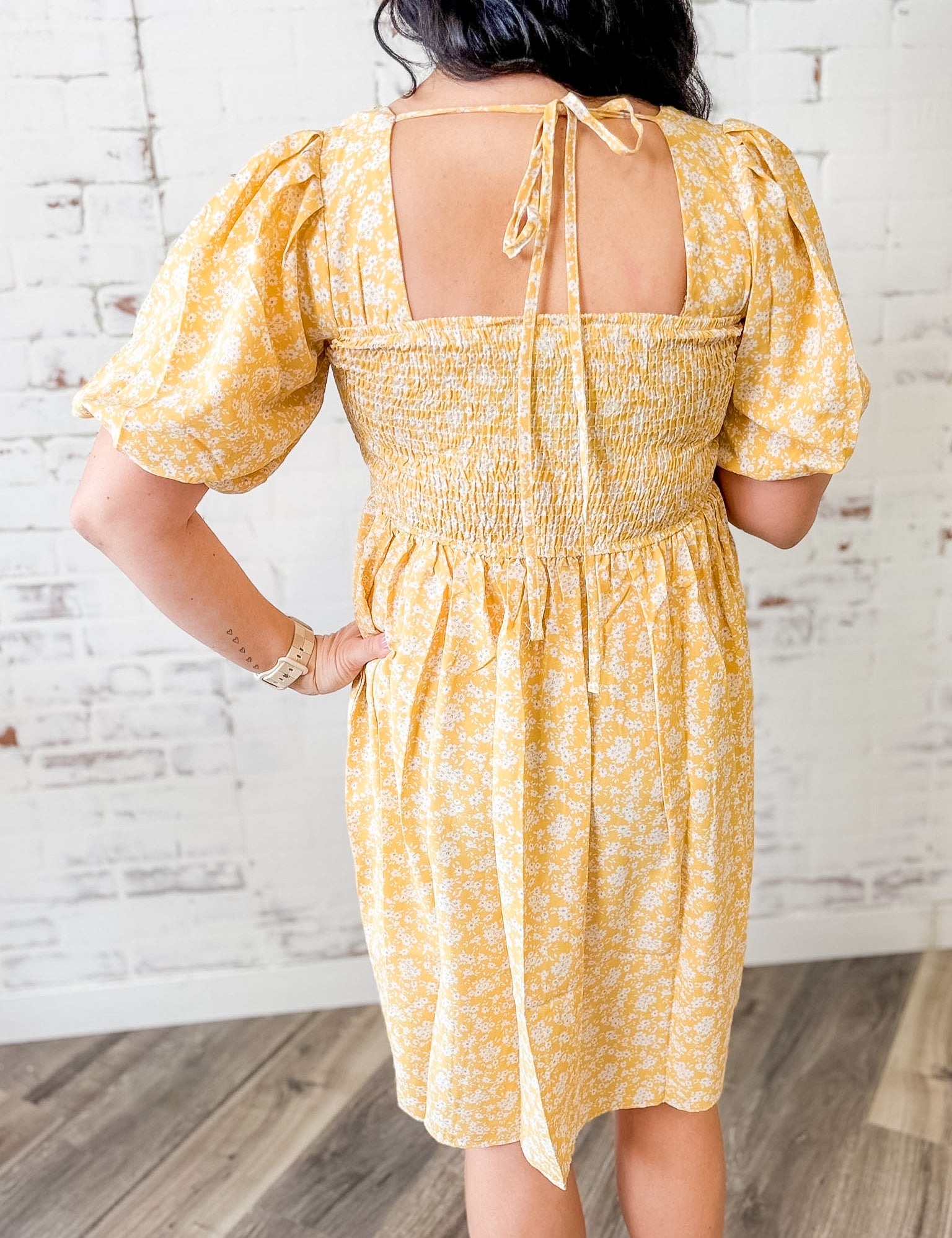 Smocked Floral Puff Sleeve Dress