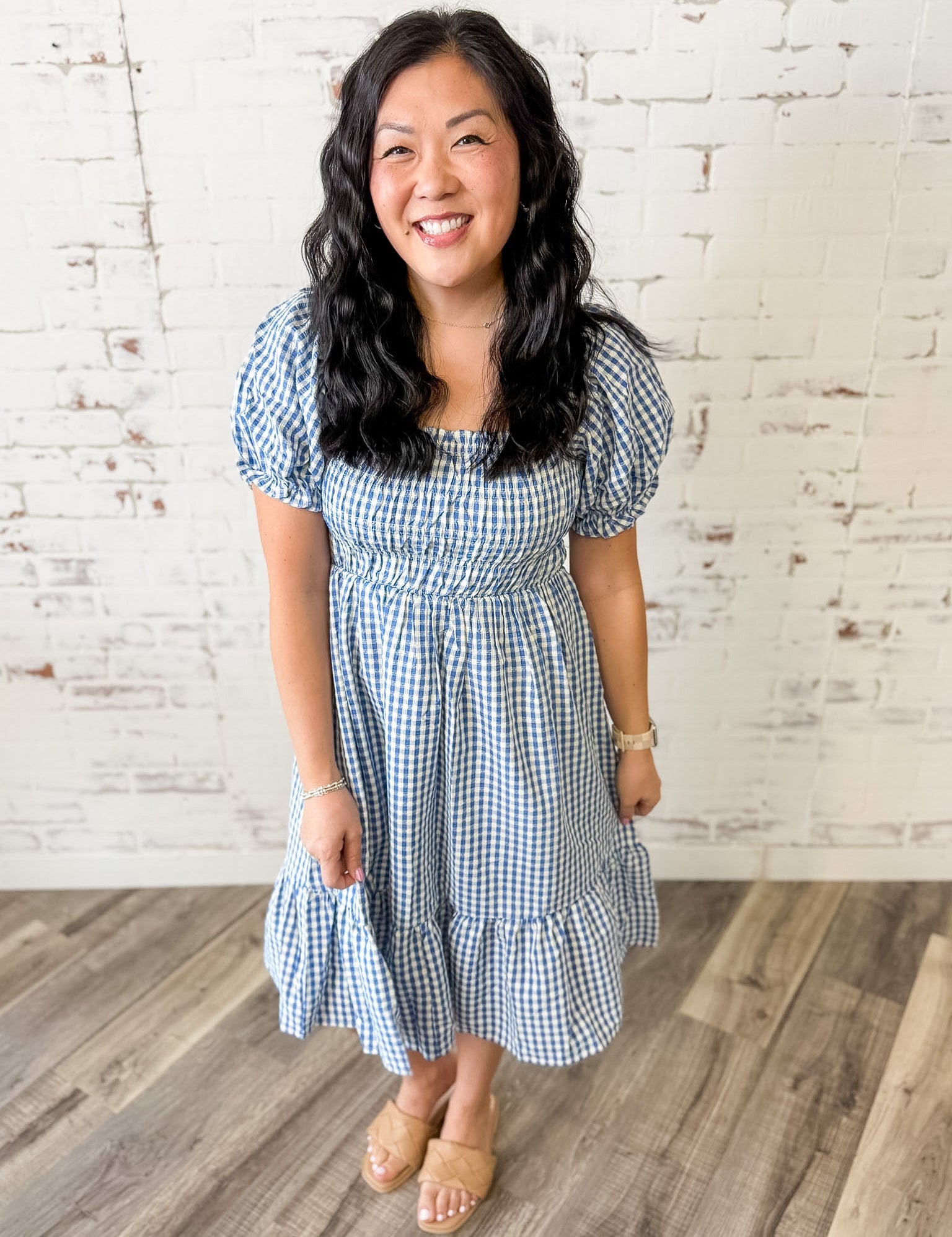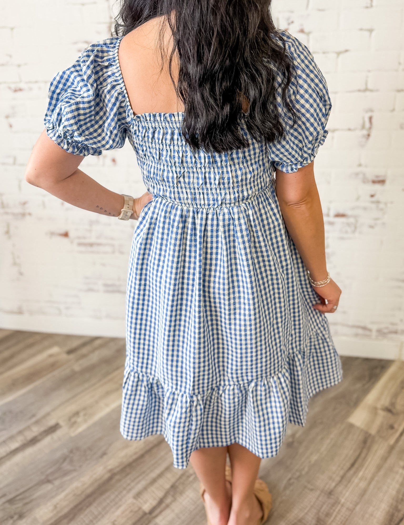 Smocked Gingham Puff Sleeve Dress