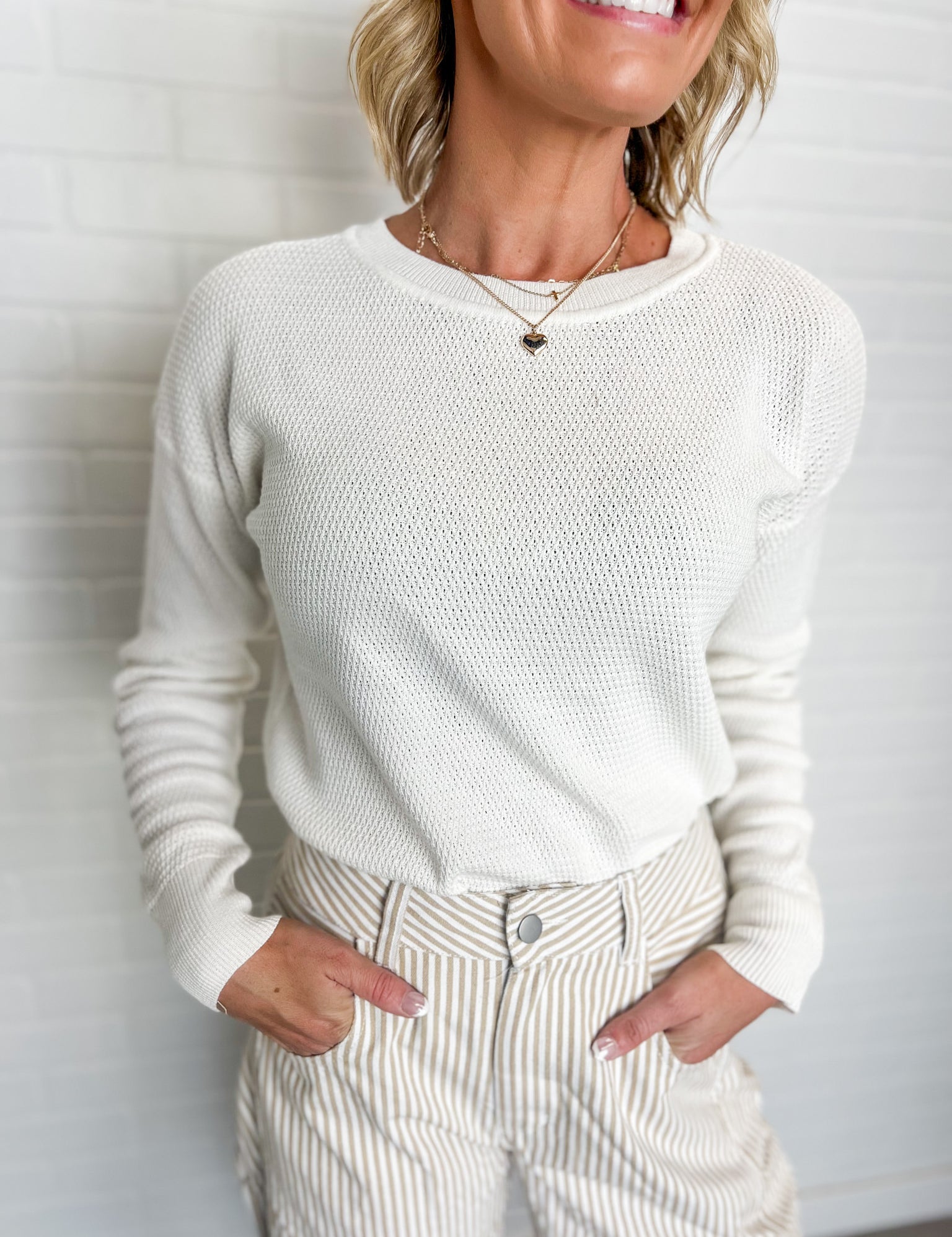 Cream Textured Knit Top