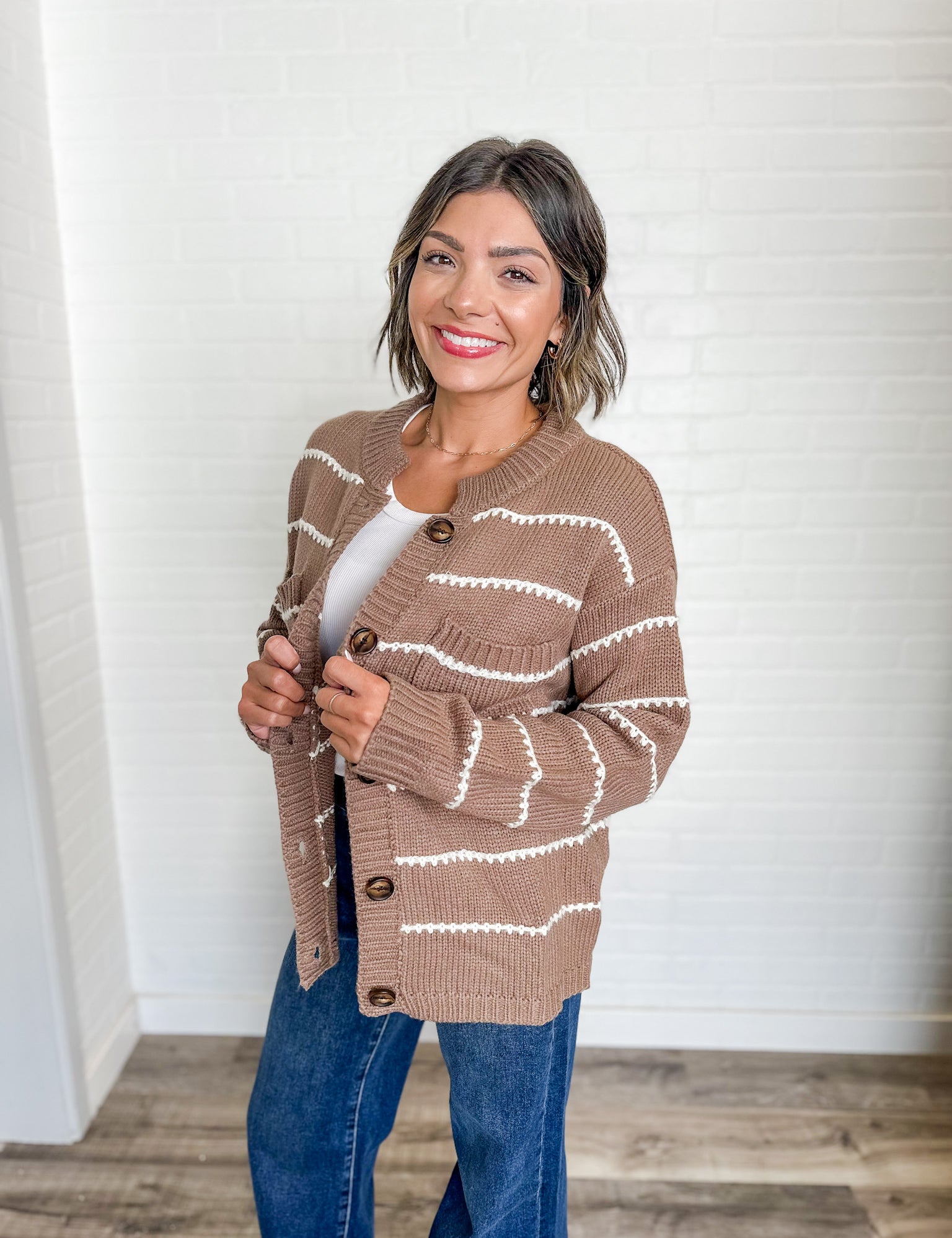 Mocha Stripe Knit Cardigan
