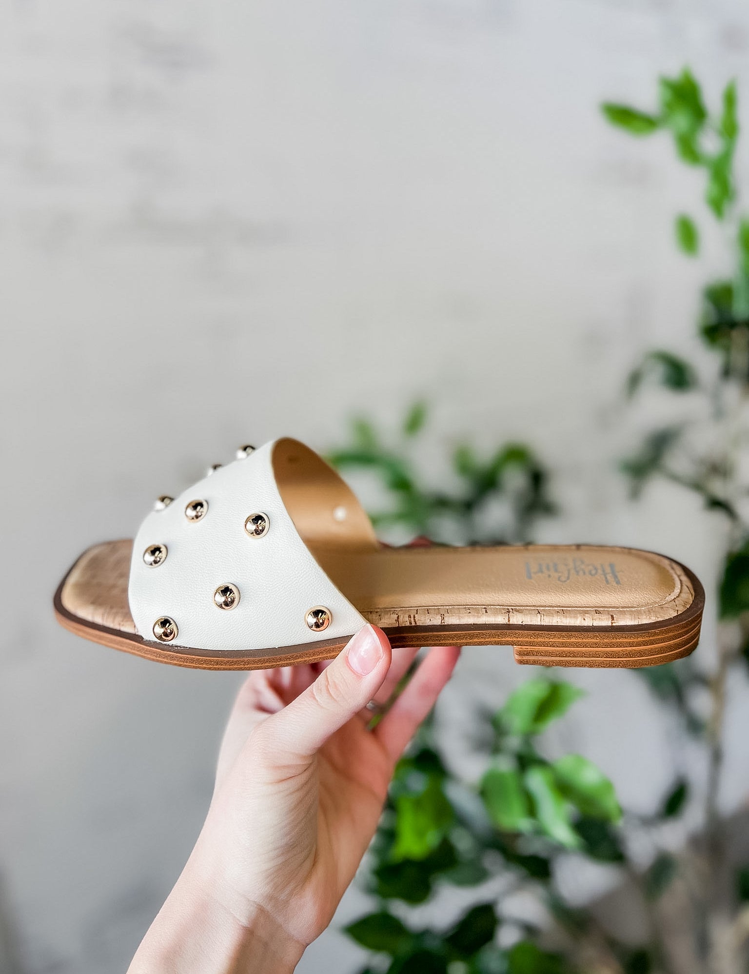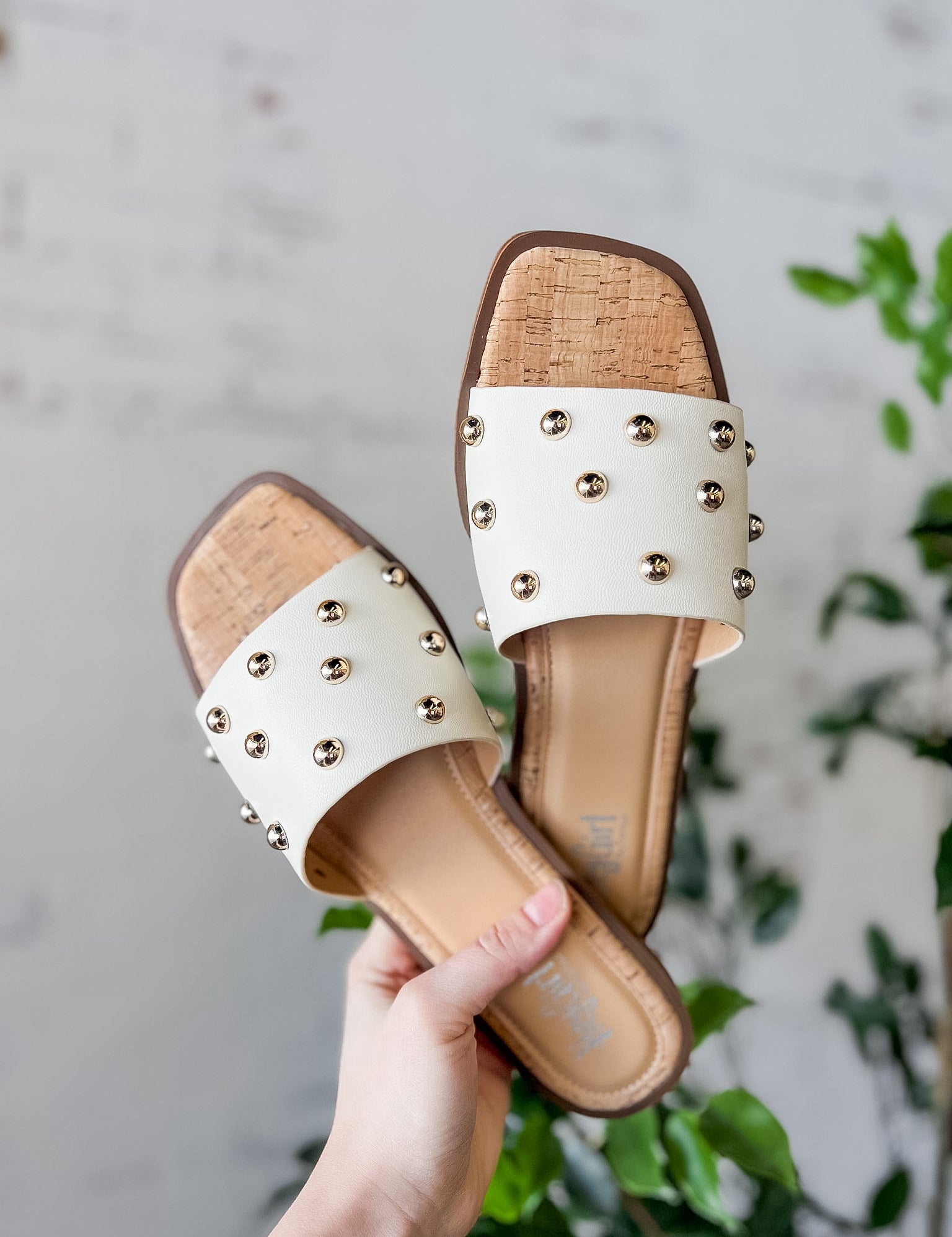 Gold Stud Cork Slide Sandals