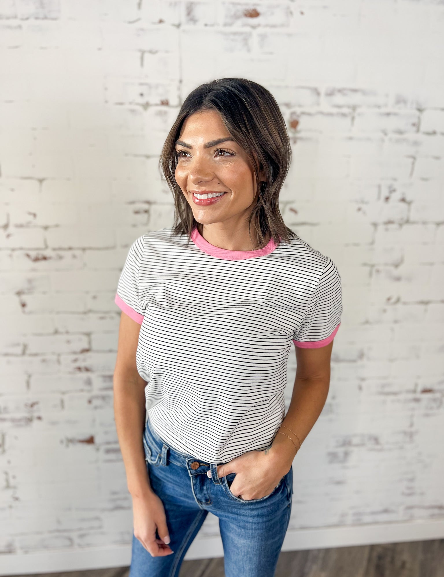 Classic Striped Tee with a Pop of Pink