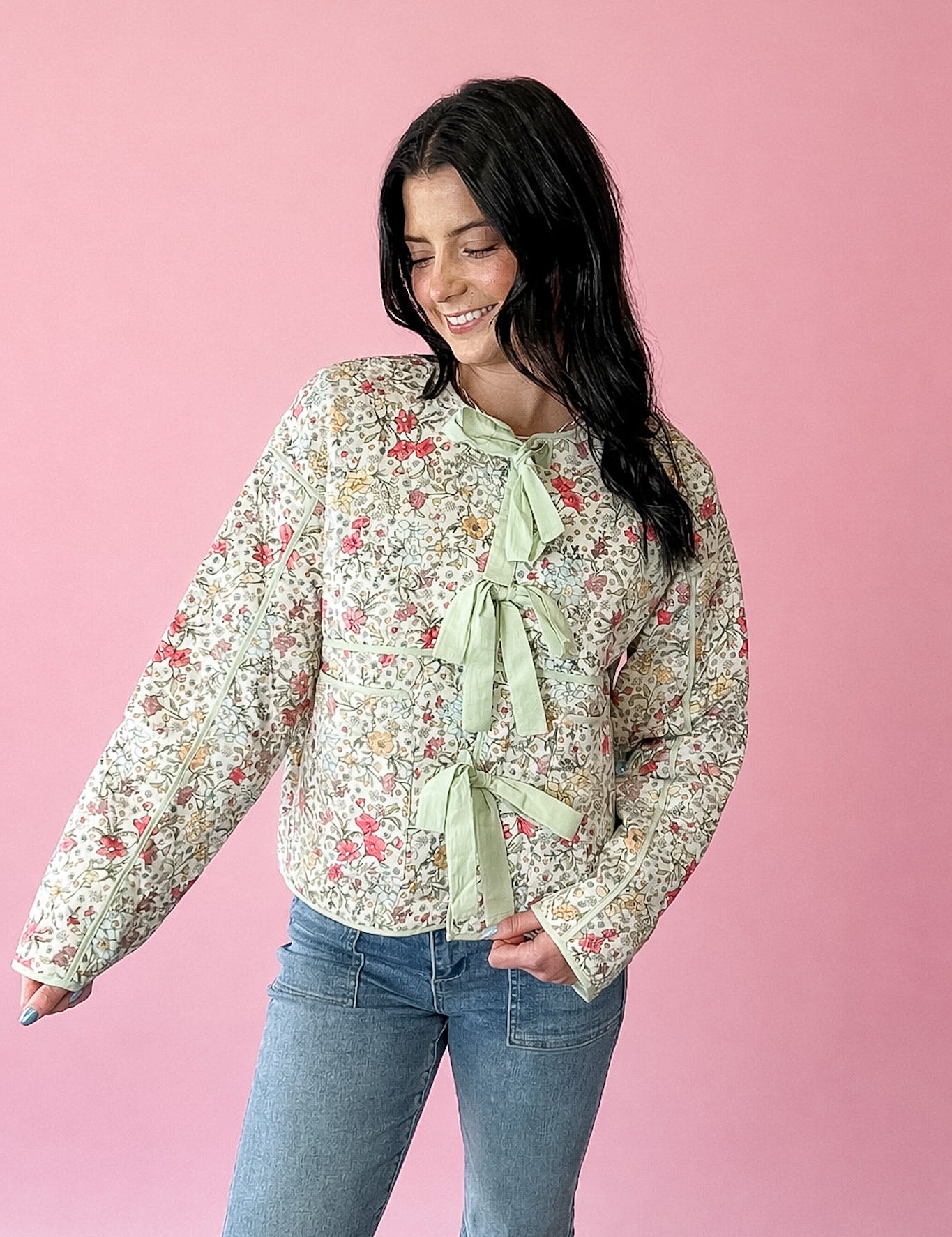 Garden Party Bow Tie Quilted Jacket