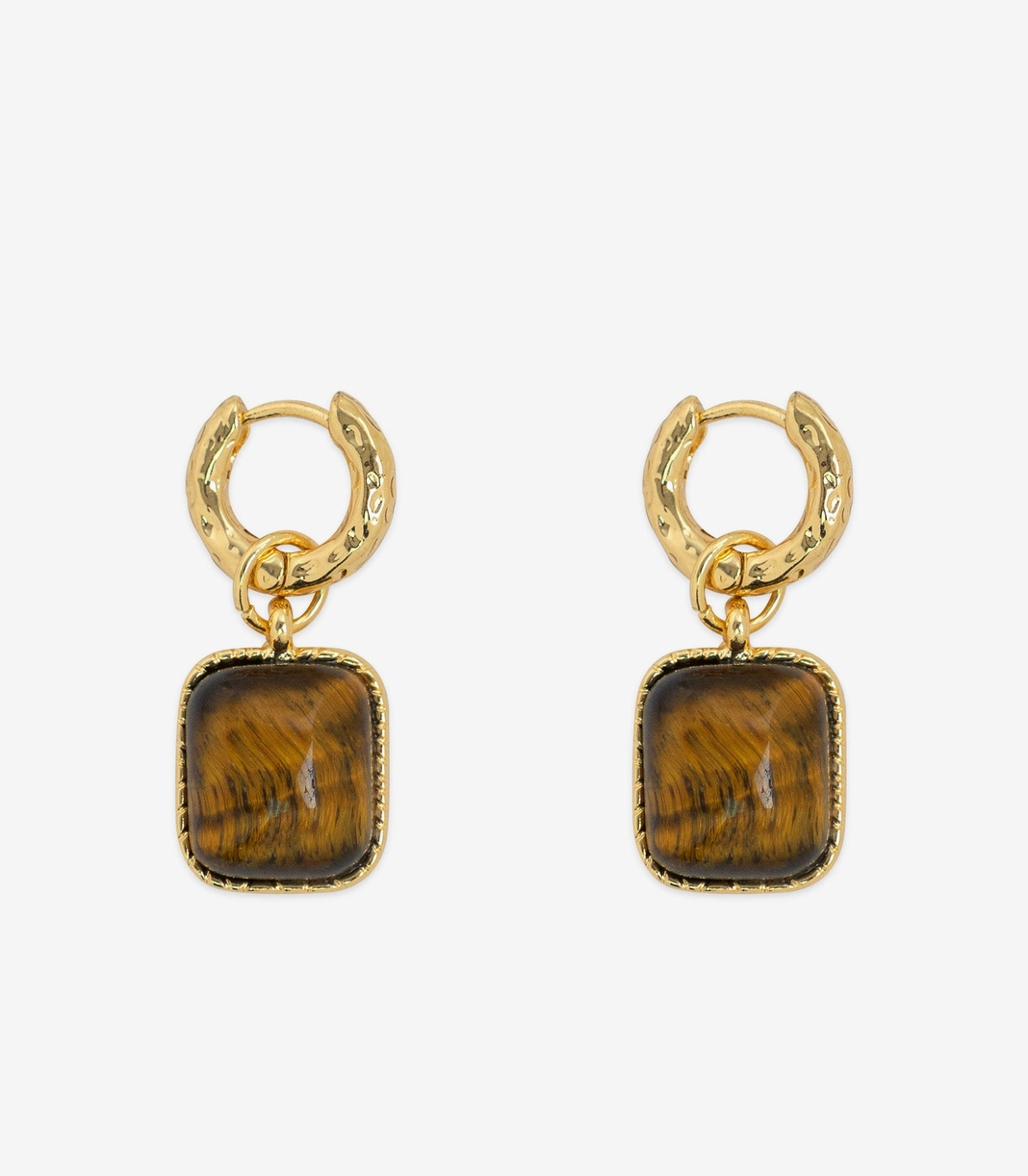 Square Brown Stone Drop Earrings