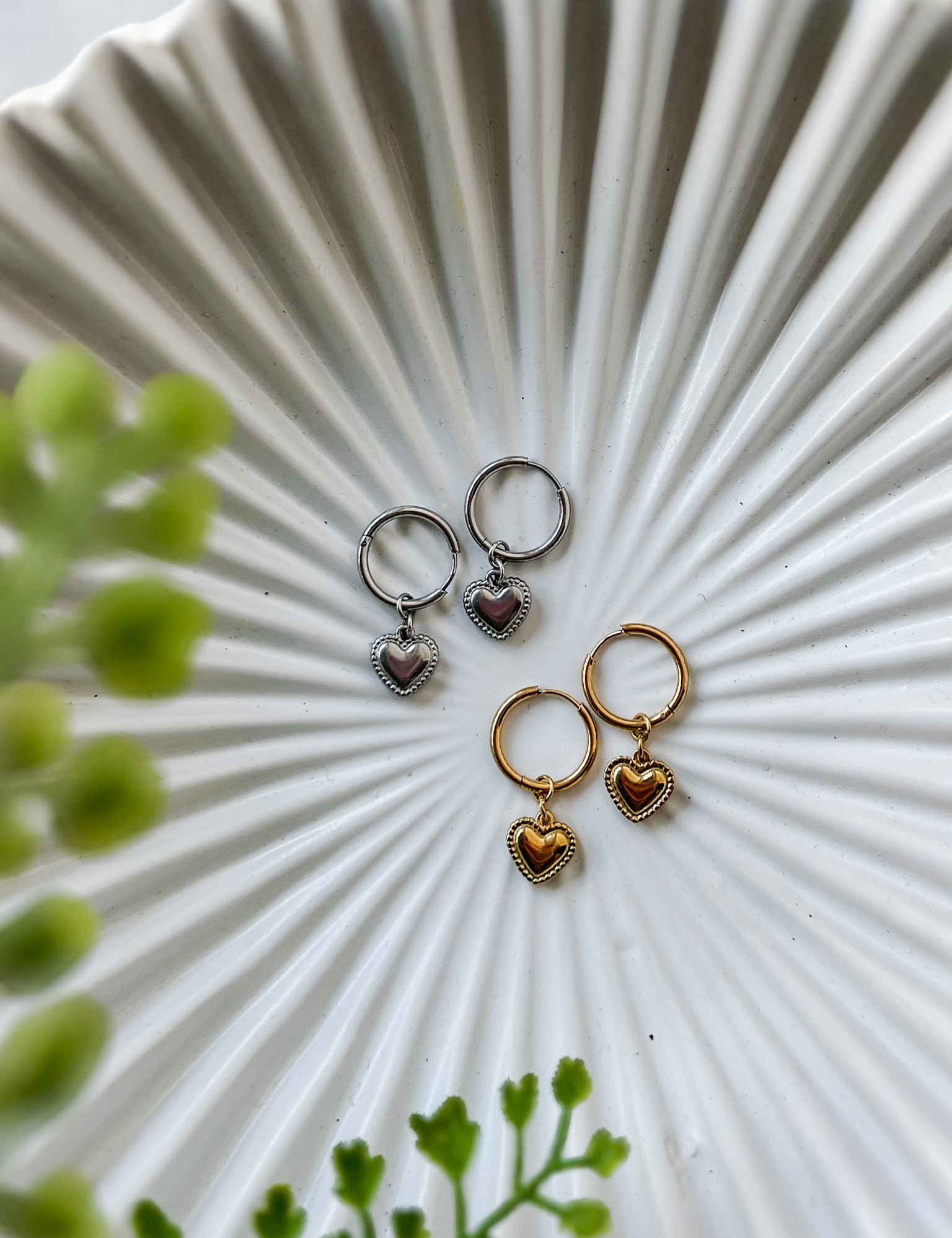 Gold Heart Pendant Hoop Earring