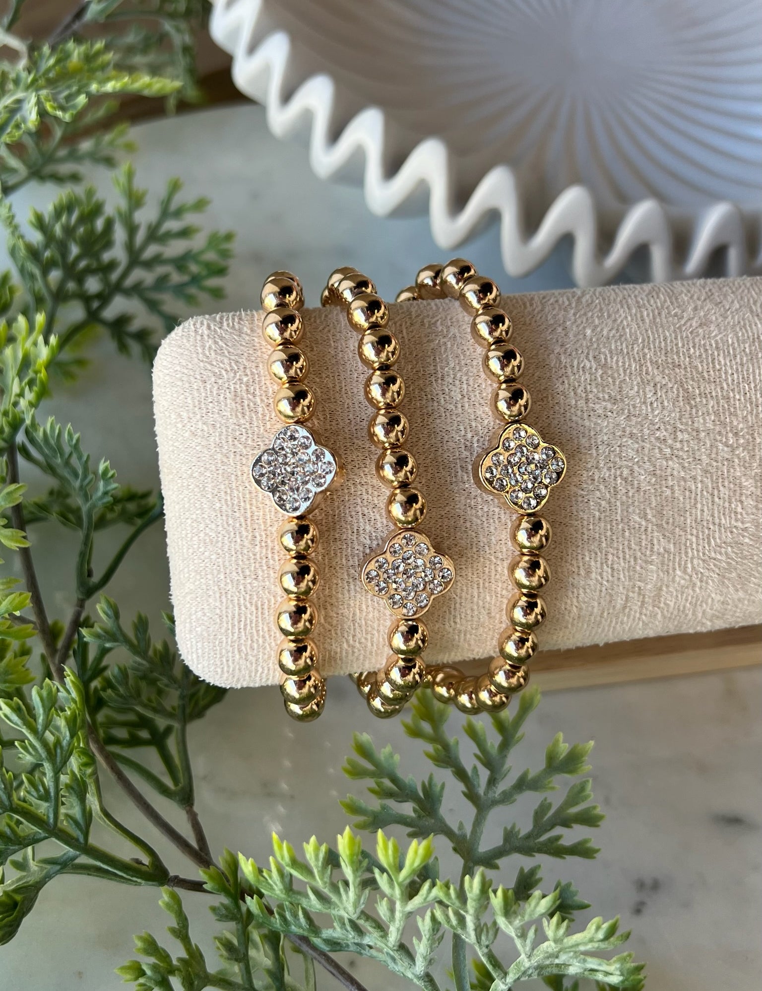 Gilded Clover Stretch Bracelet Set
