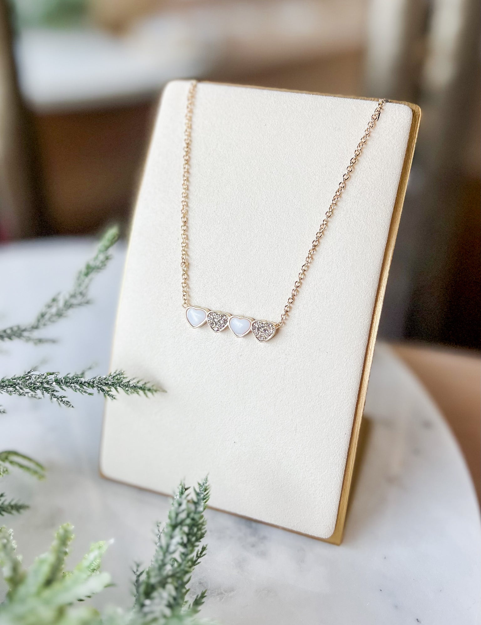 Mop & Pave Hearts Necklace