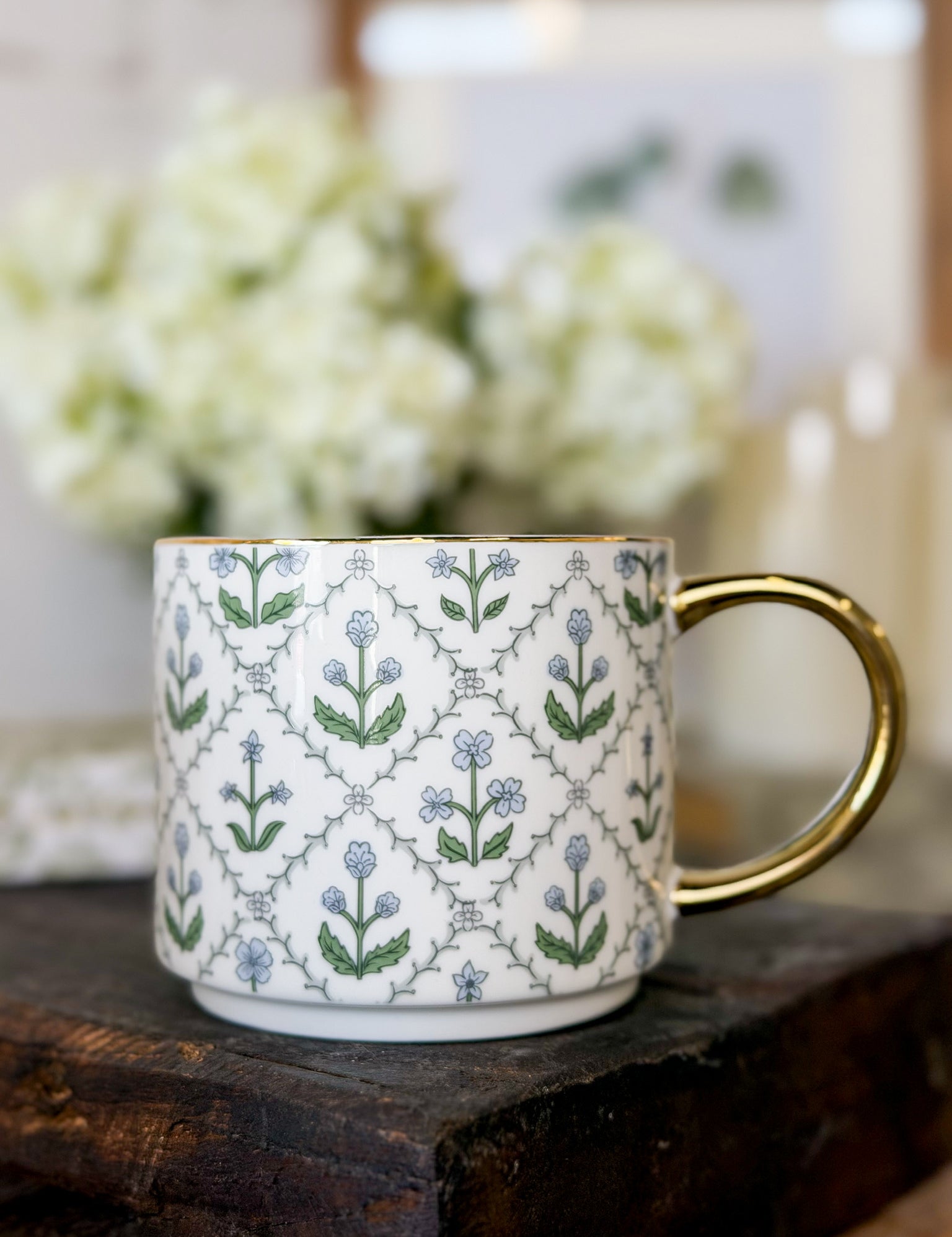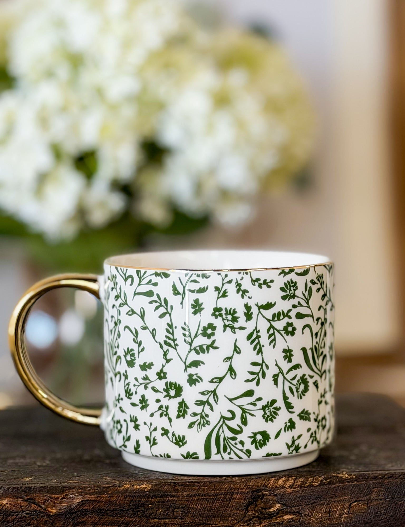 Green Floral Coffee Mug