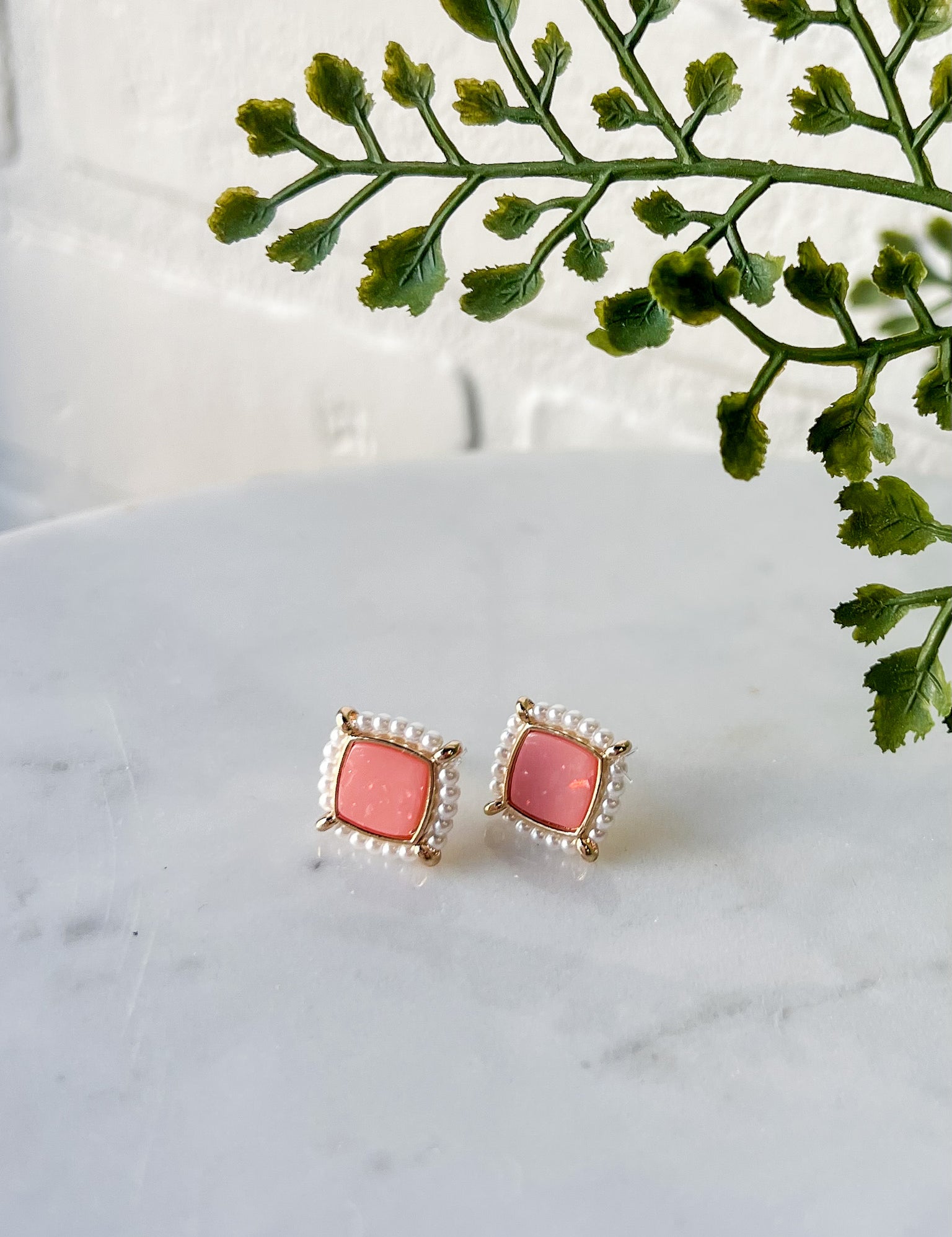 Blush Pearl Trim Stud Earrings