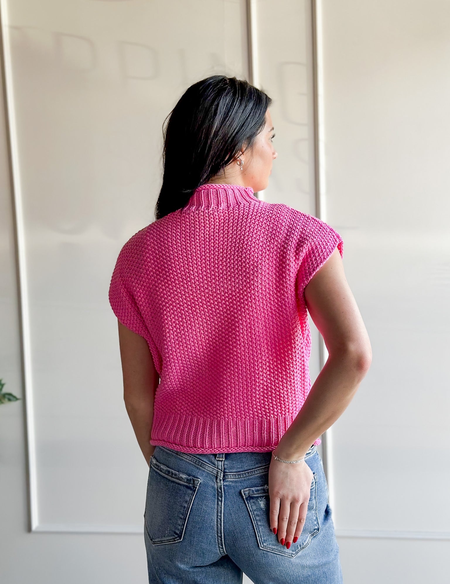 Hot Pink Mock Neck Knit Tank