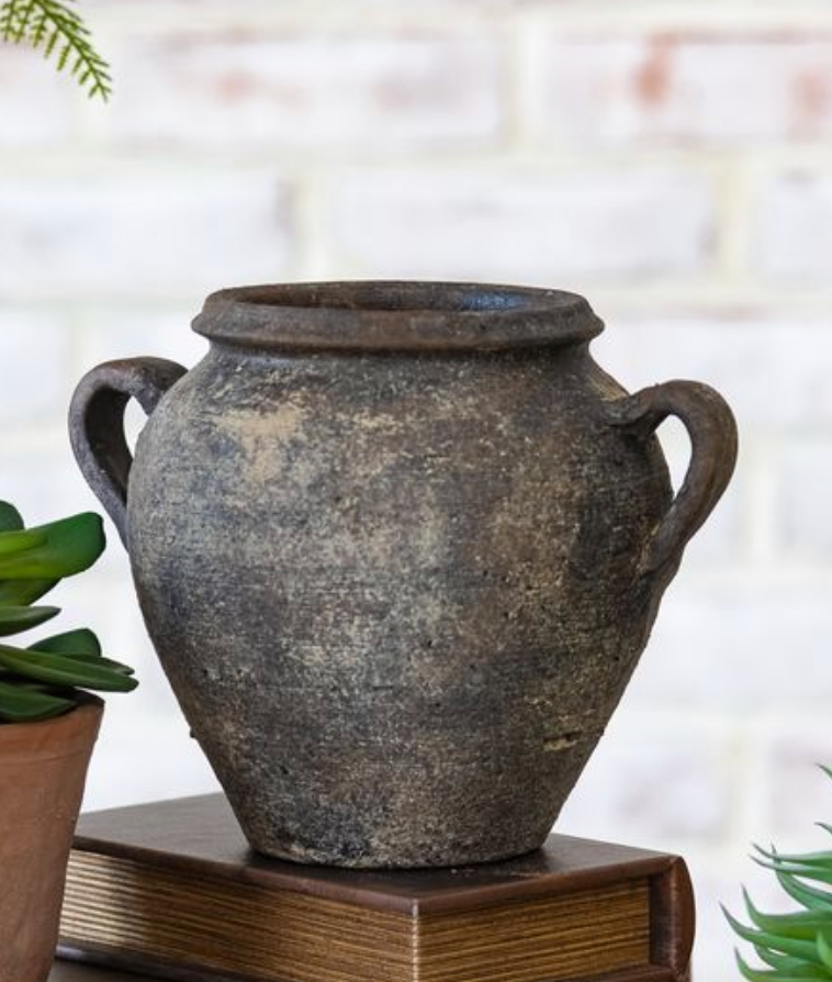 Antique-Style Stone Vase with Handles – 7.5"