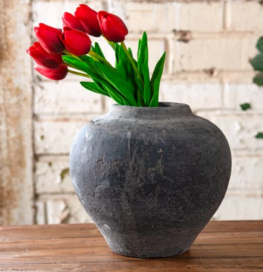 Antique-Style Rounded Stone Vase – 8"