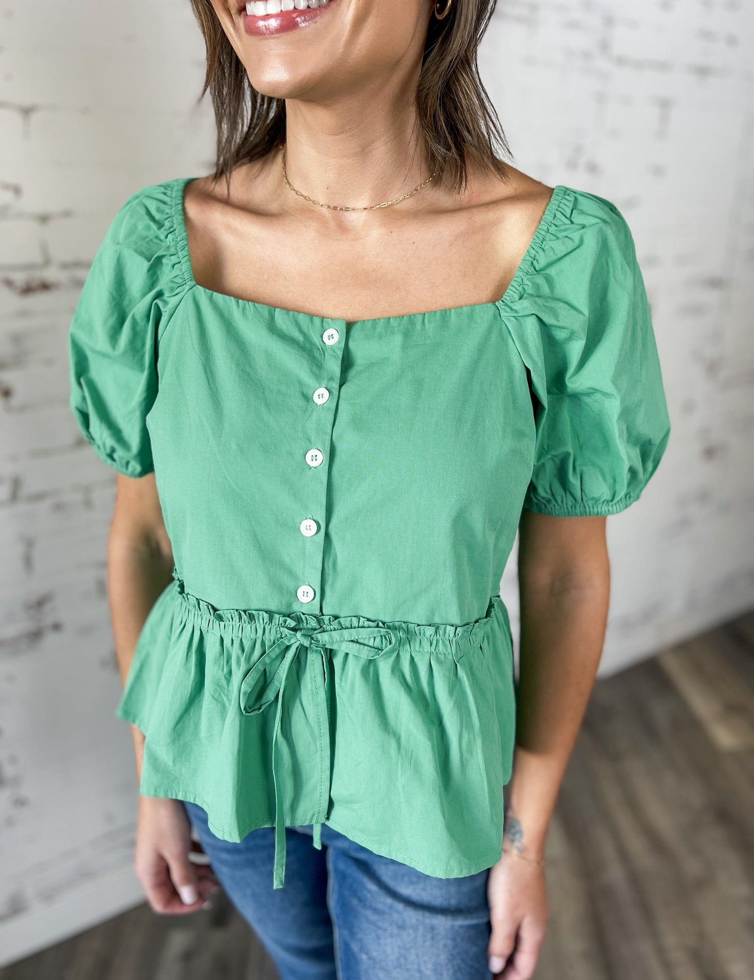 Peplum Puff Sleeve Blouse