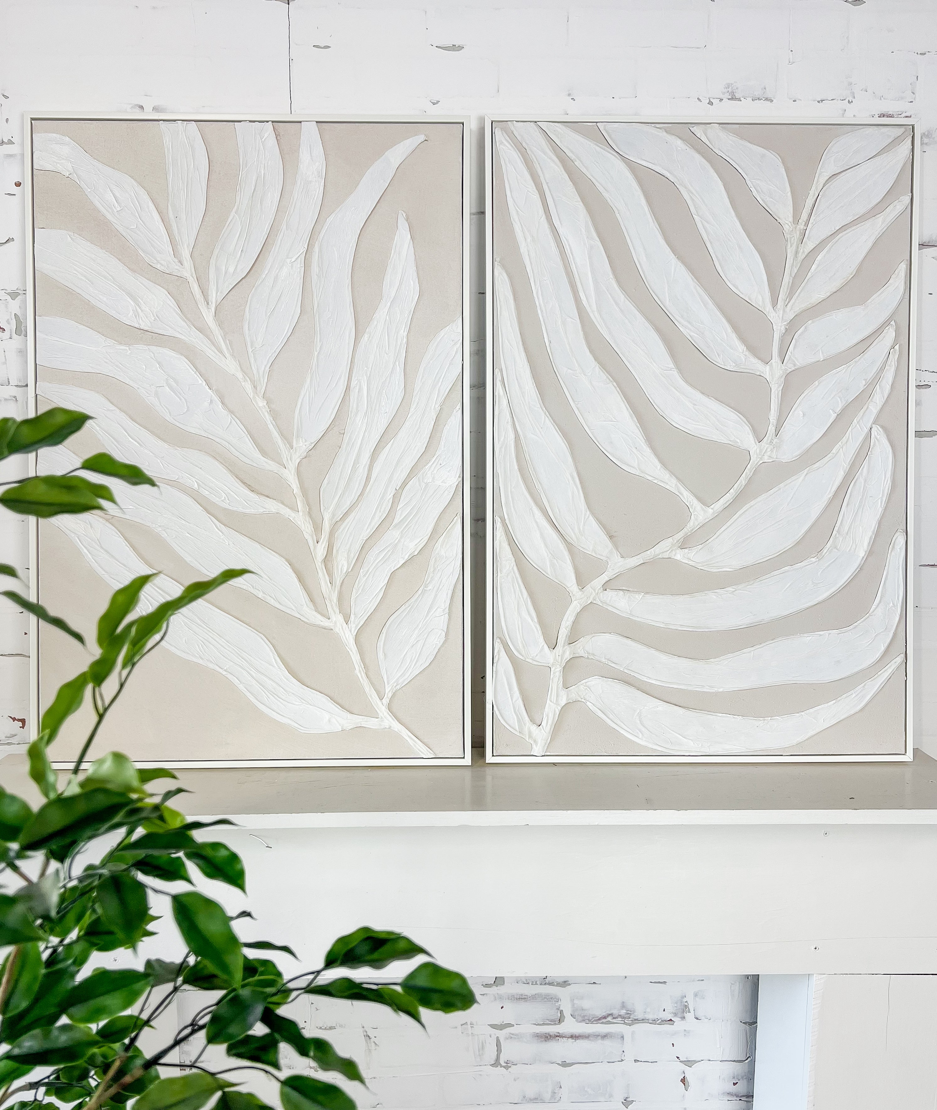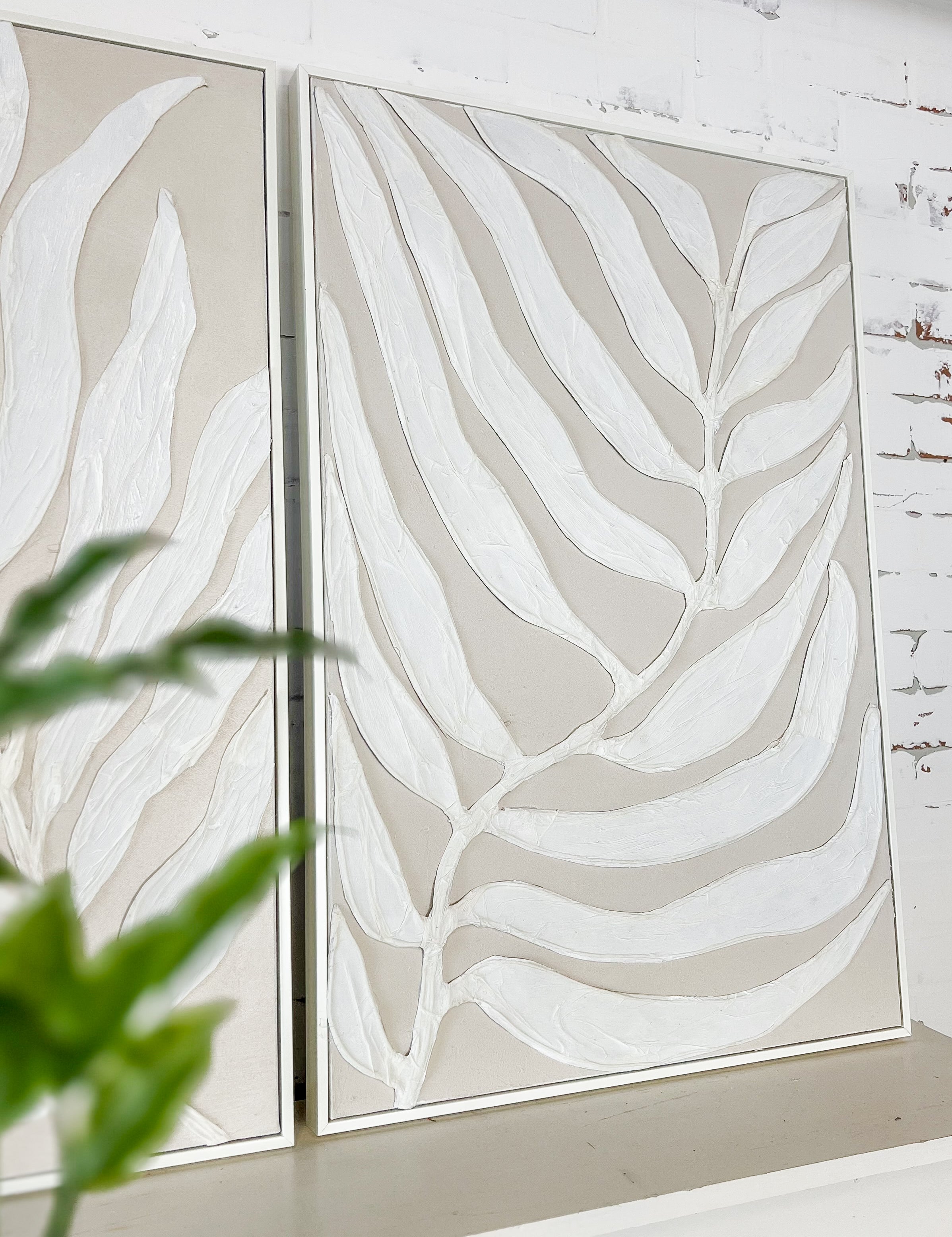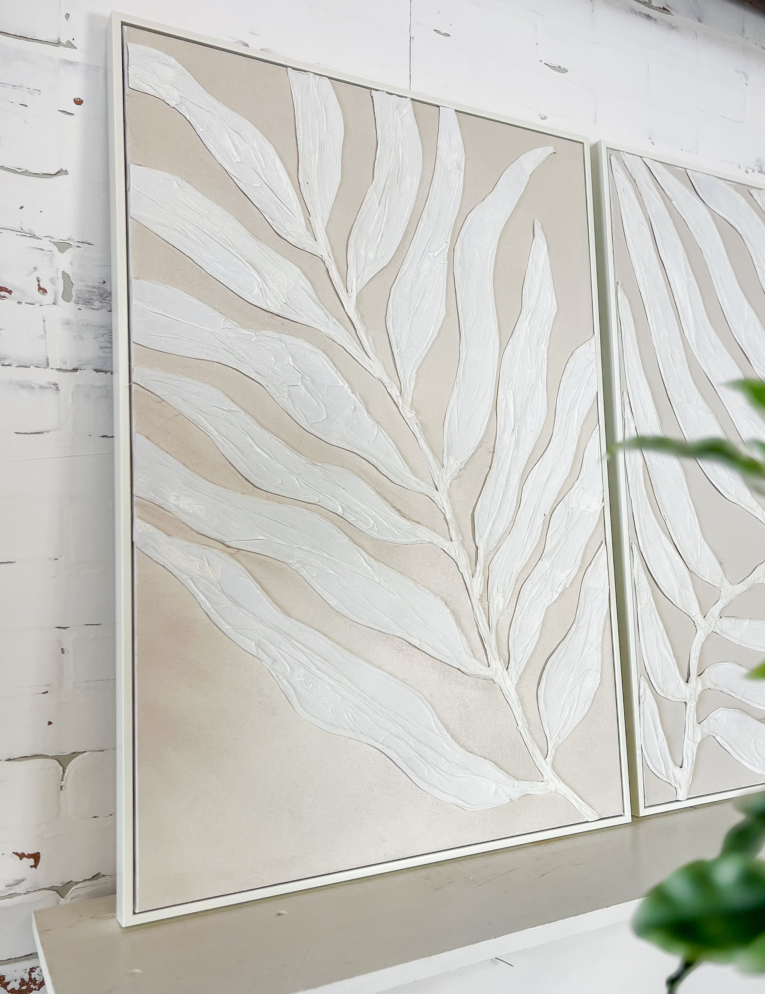 Ivory Leaf Framed Canvas II