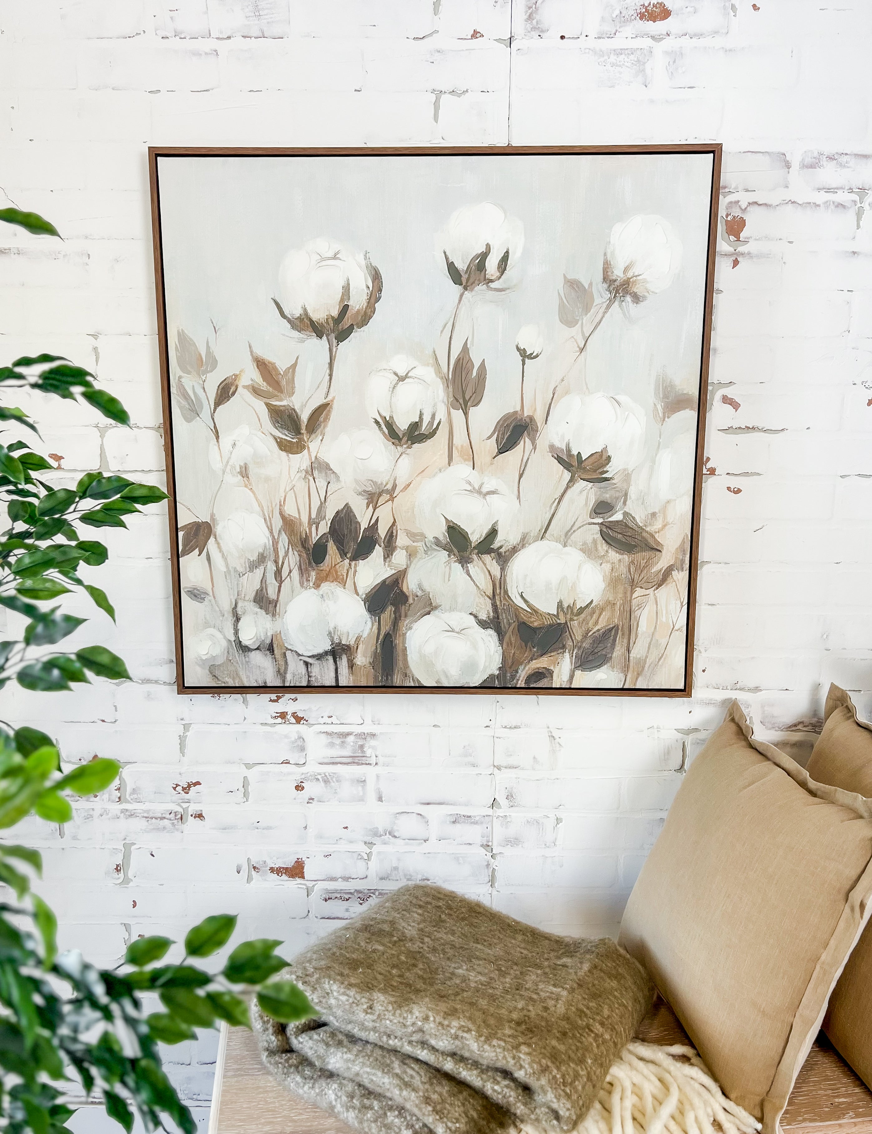 Cotton Season Walnut-Framed Canvas