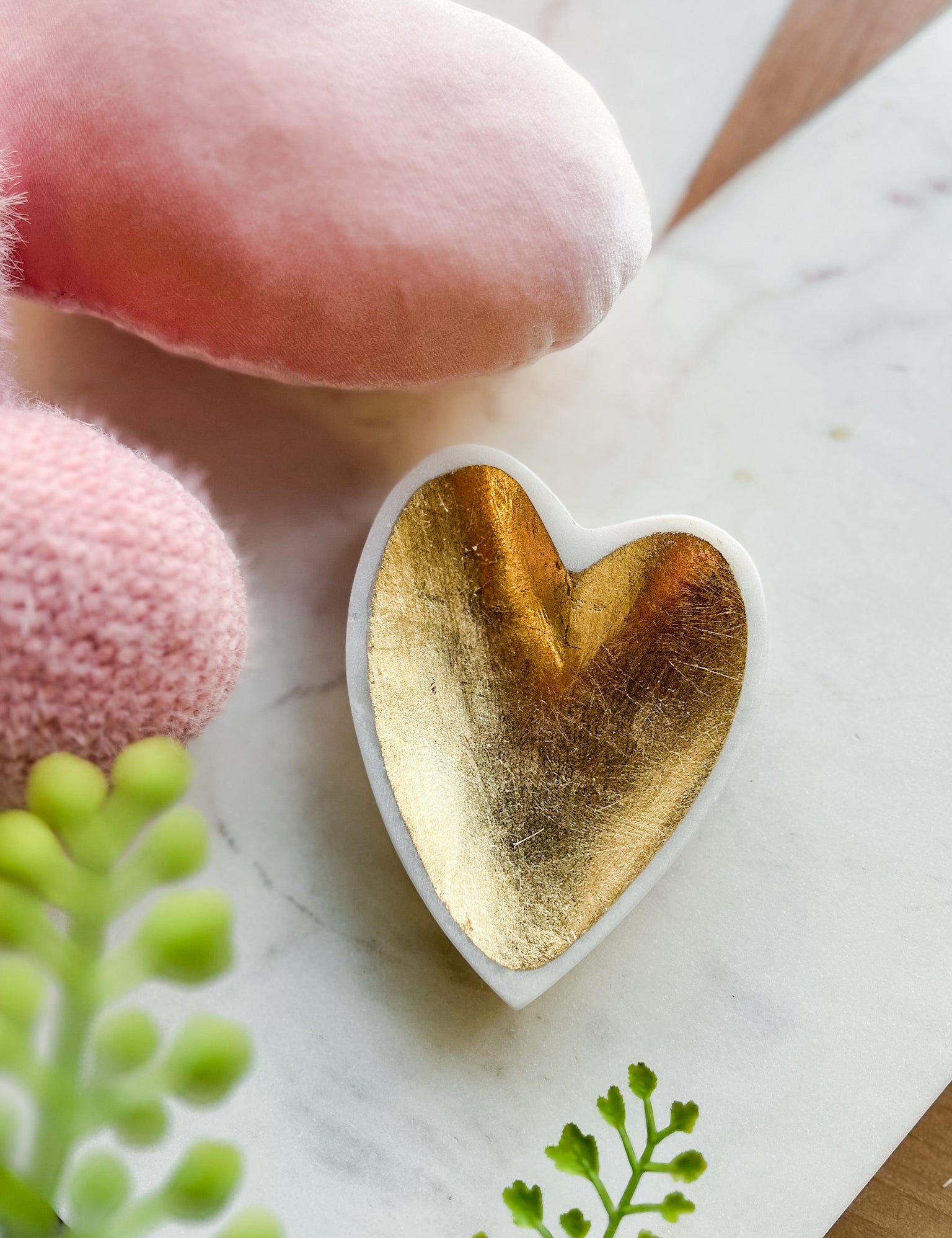 Marble Jewelry Dish with Gold Heart