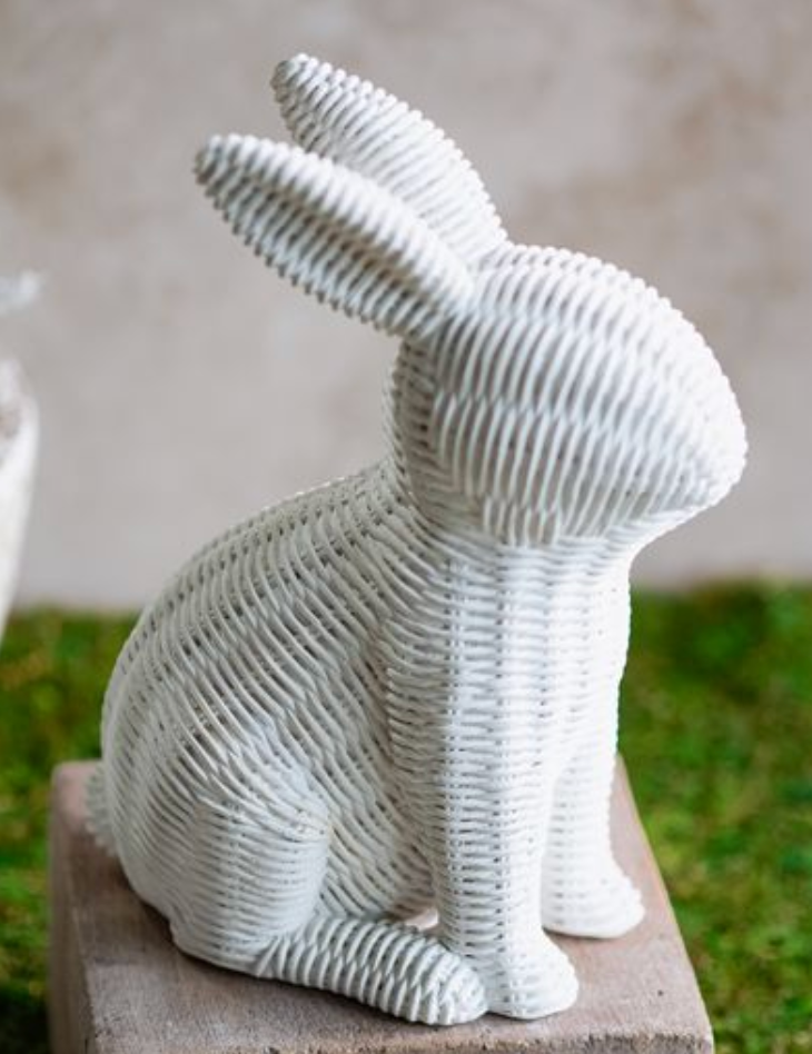 8.5" White Rattan Bunny