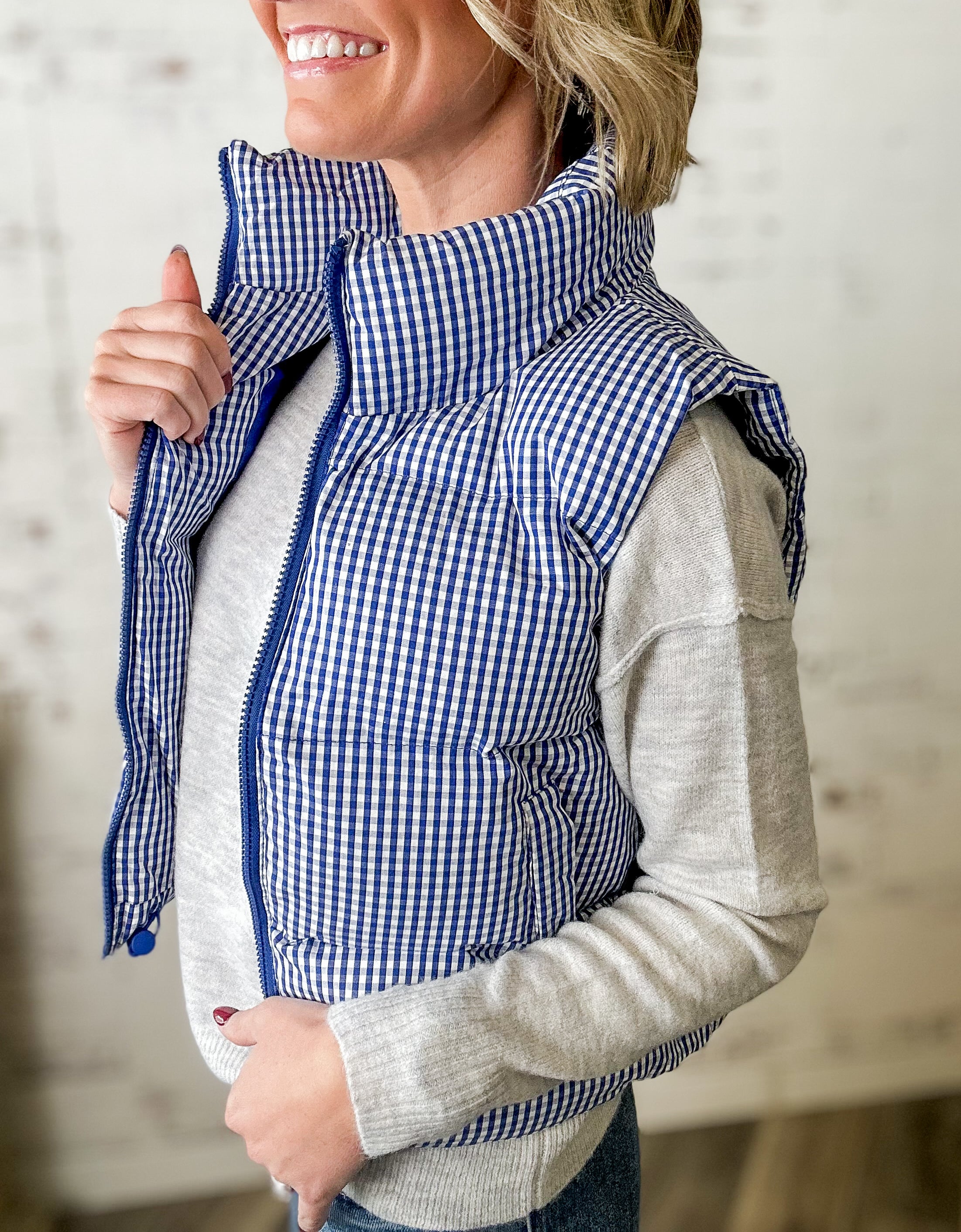 Gingham Puffer Vest