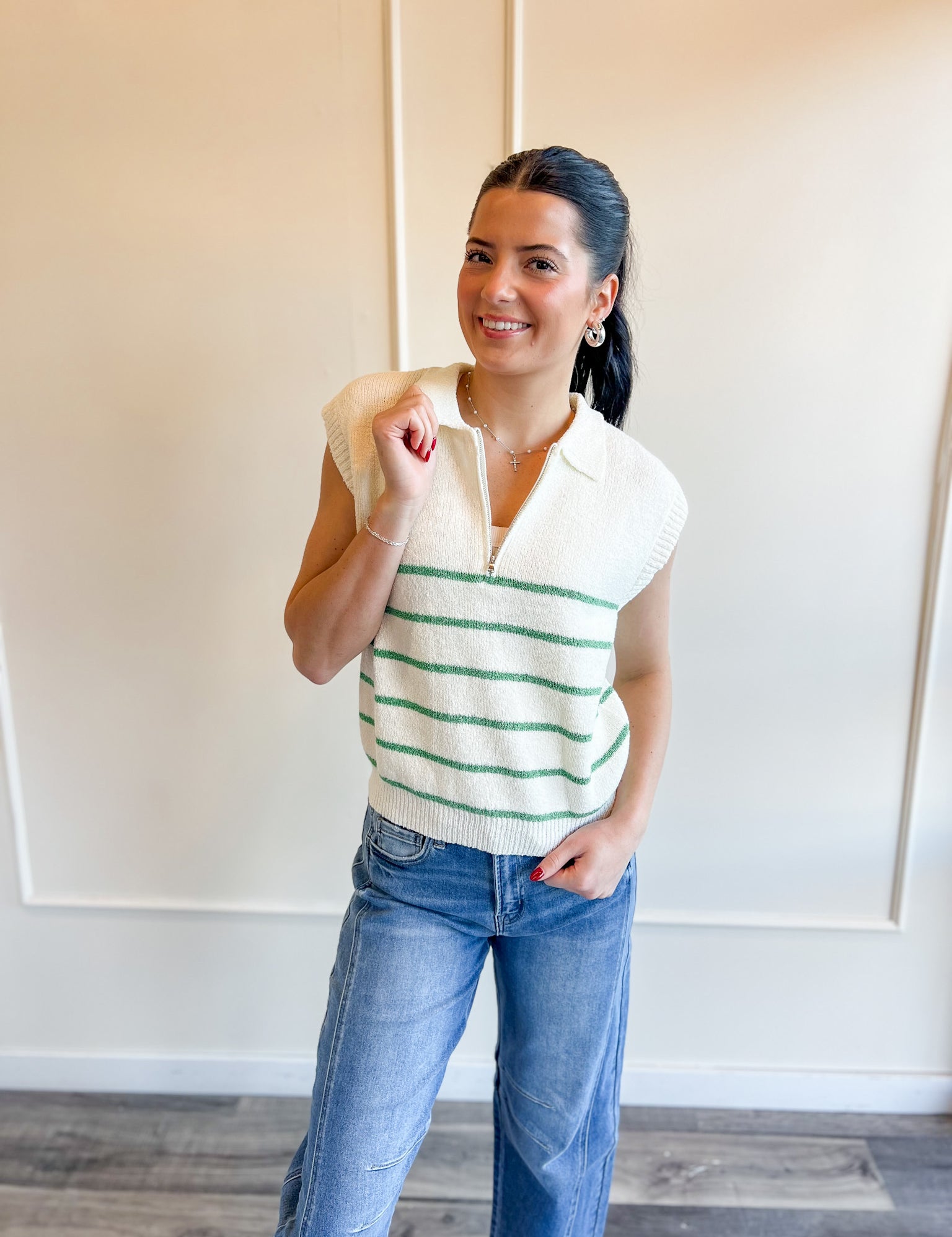 Harbor Stripe Zip Knit Top
