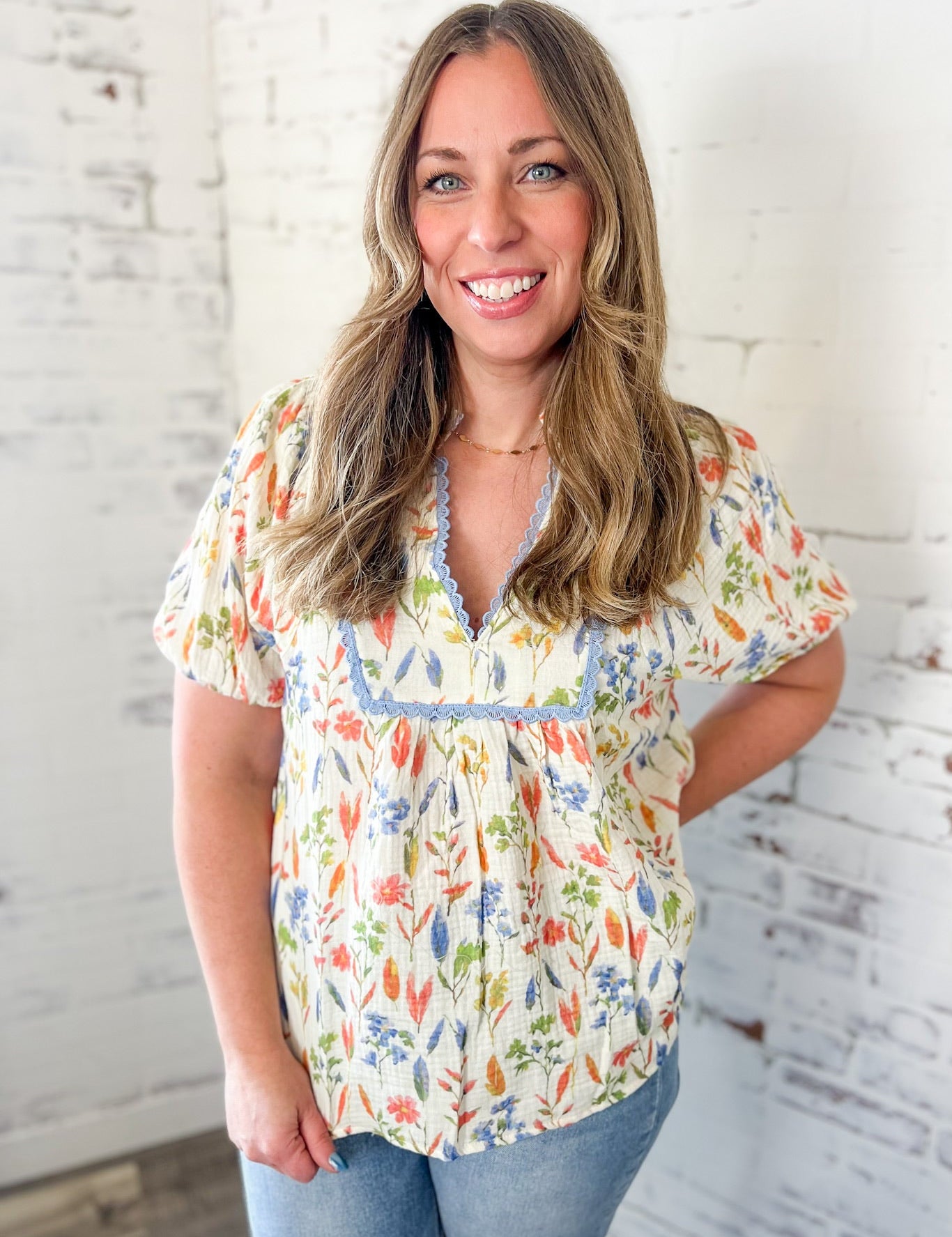 Floral Lace Trim Spring Blouse