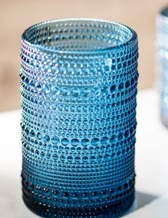 4" Blue Beaded Glass Tumbler