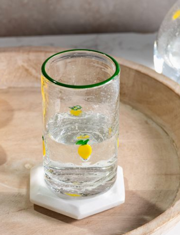 5" Lemon Print Bubble Drink Glass