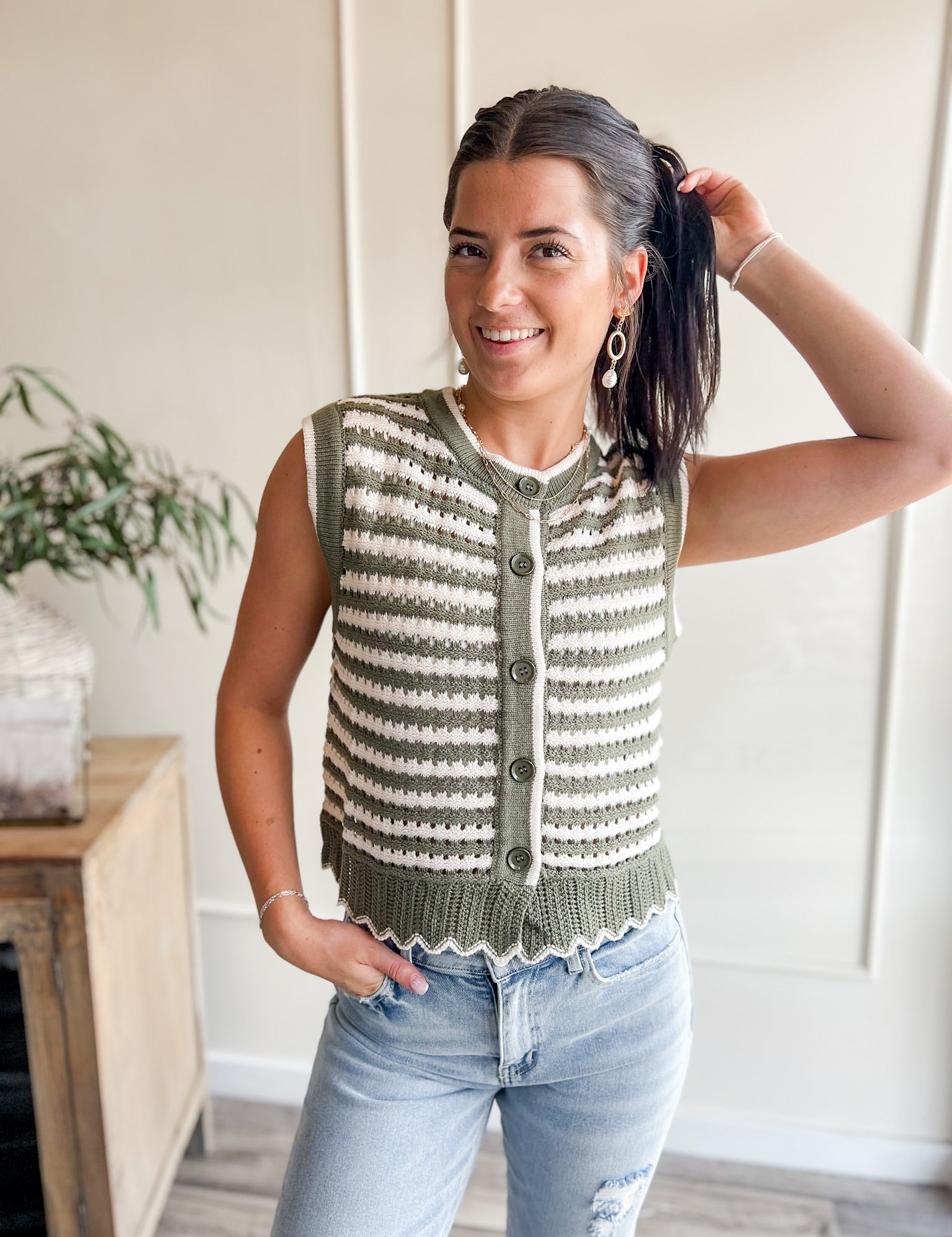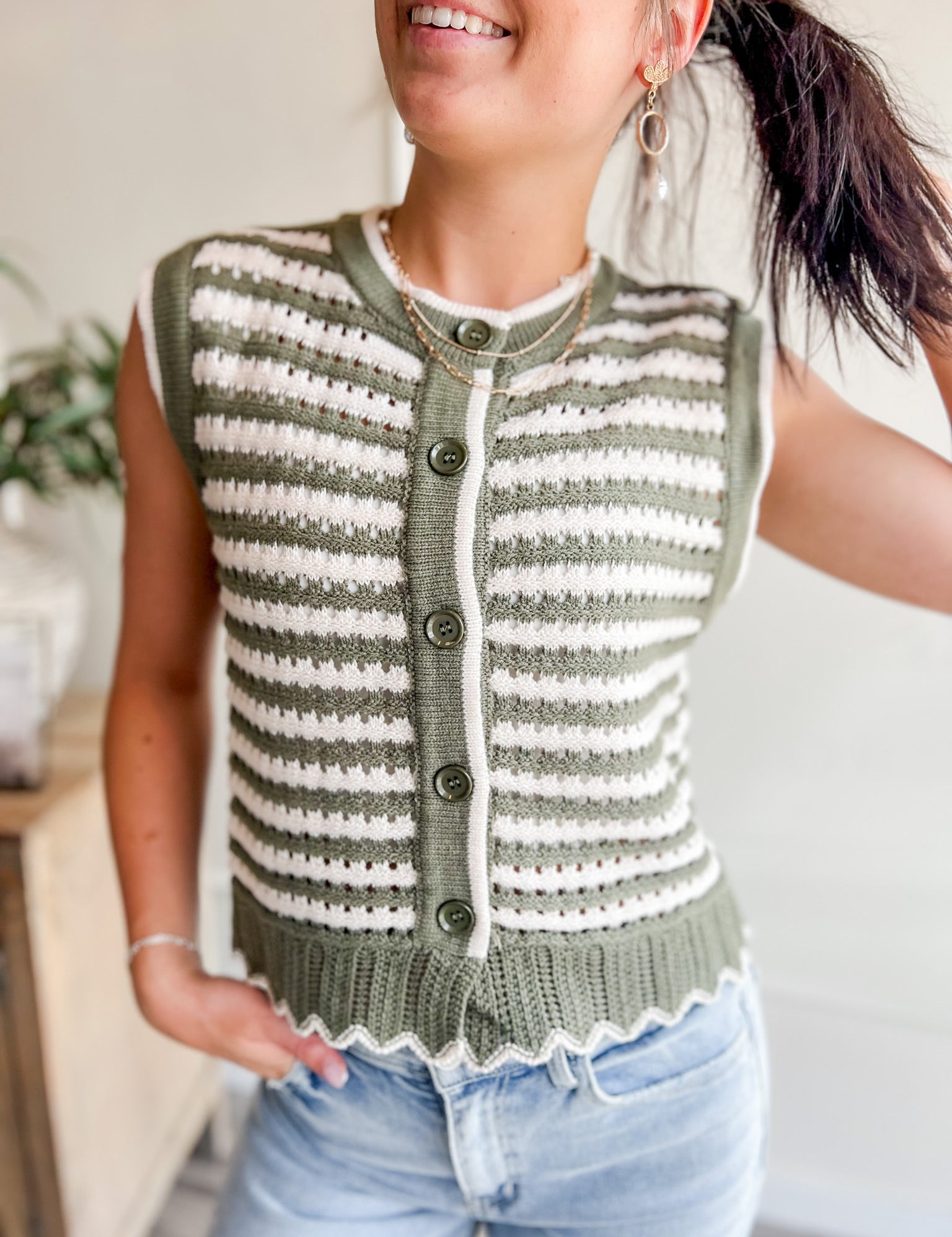 Sage Stripes Knit Vest