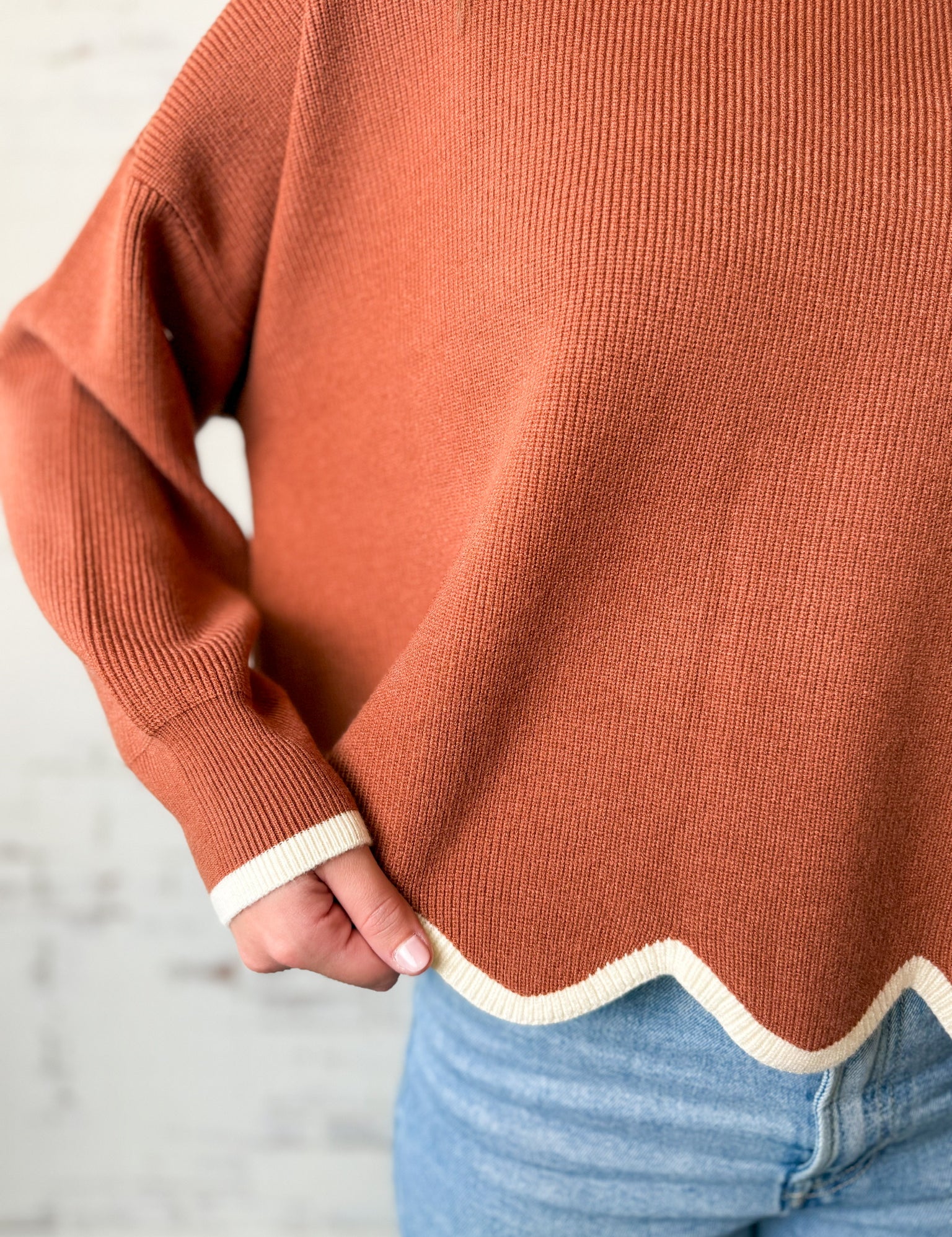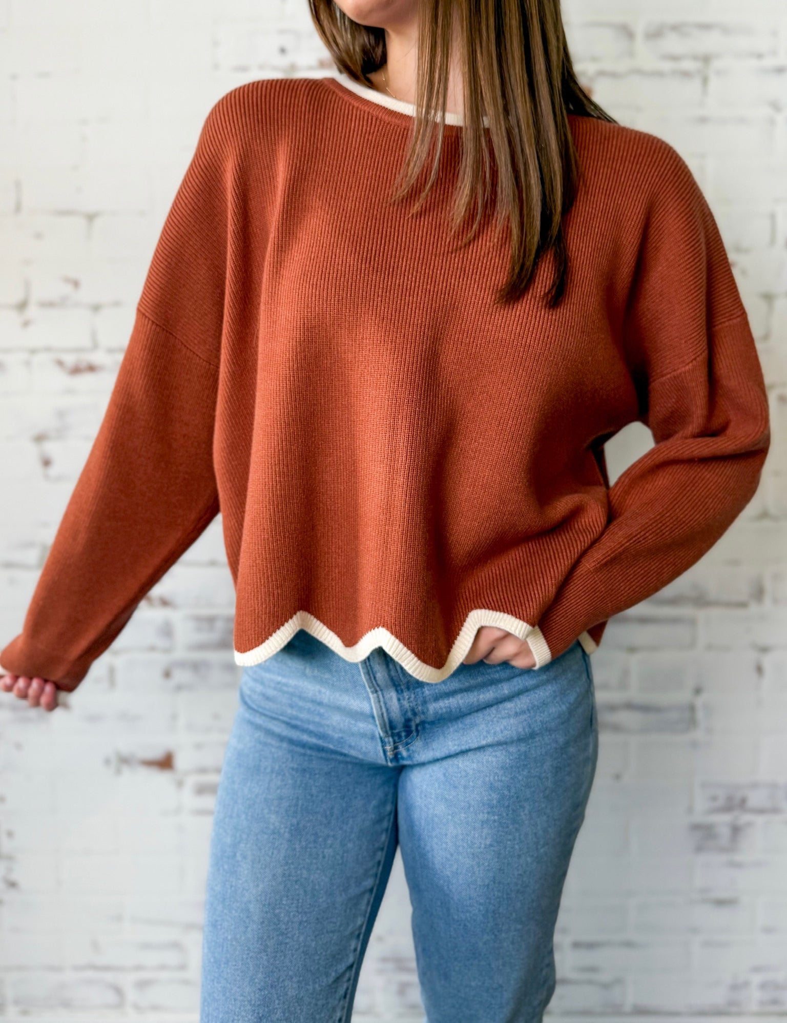 Rust Scallop Hem Sweater