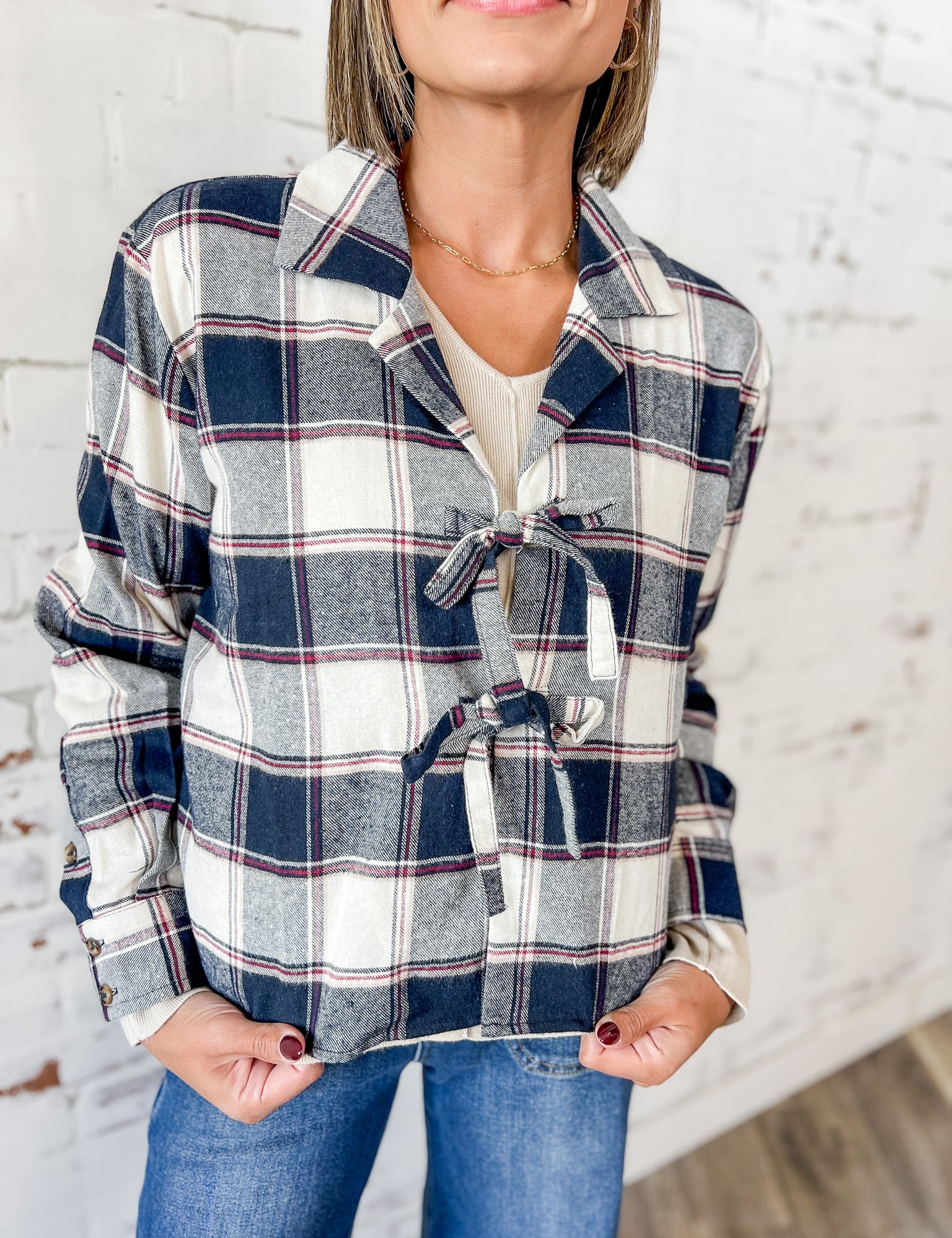 Plaid Tie-Front Jacket