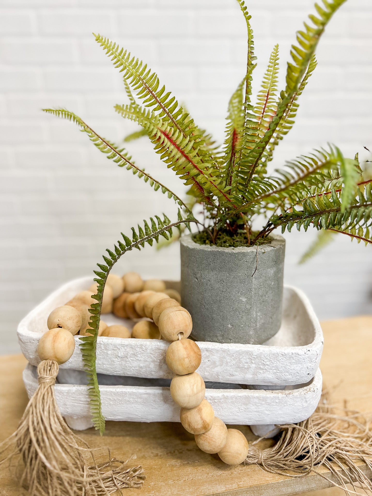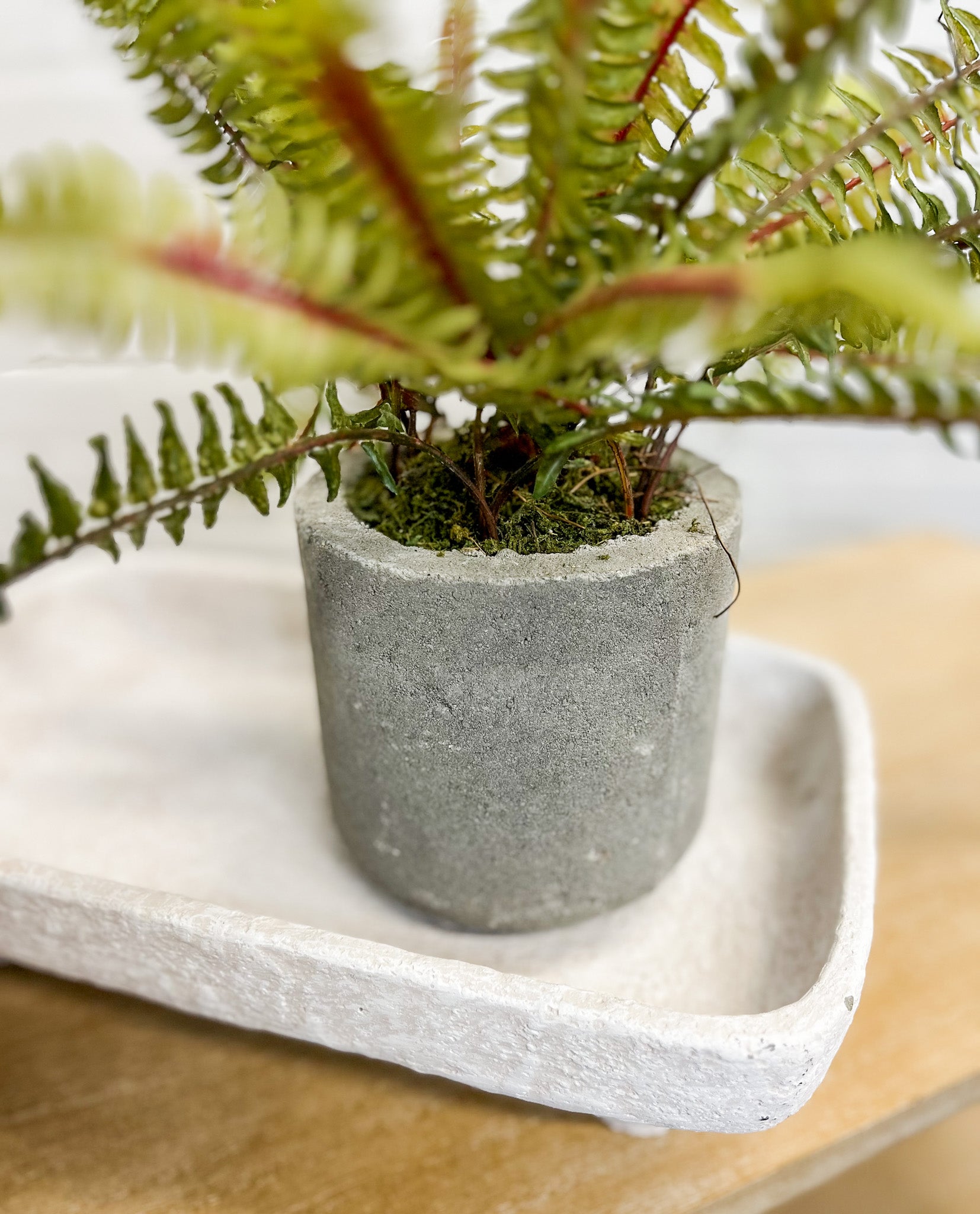 No green thumb necessary with this fern plant! It’s versatile to style, includes a heavy ceramic pot with moss detail and looks like the real deal — for less cost and maintenance!