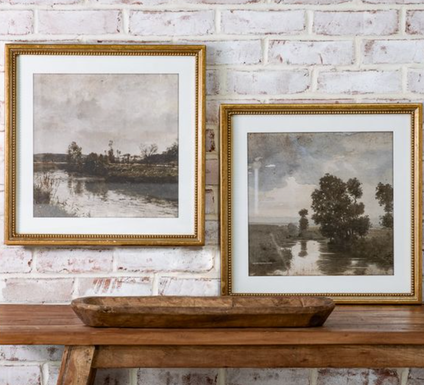 This framed landscape artwork features soft, muted tones and a classic vintage-inspired scene for a timeless, collected look. Beautiful styled on its own or layered together to create an effortless gallery-style moment.