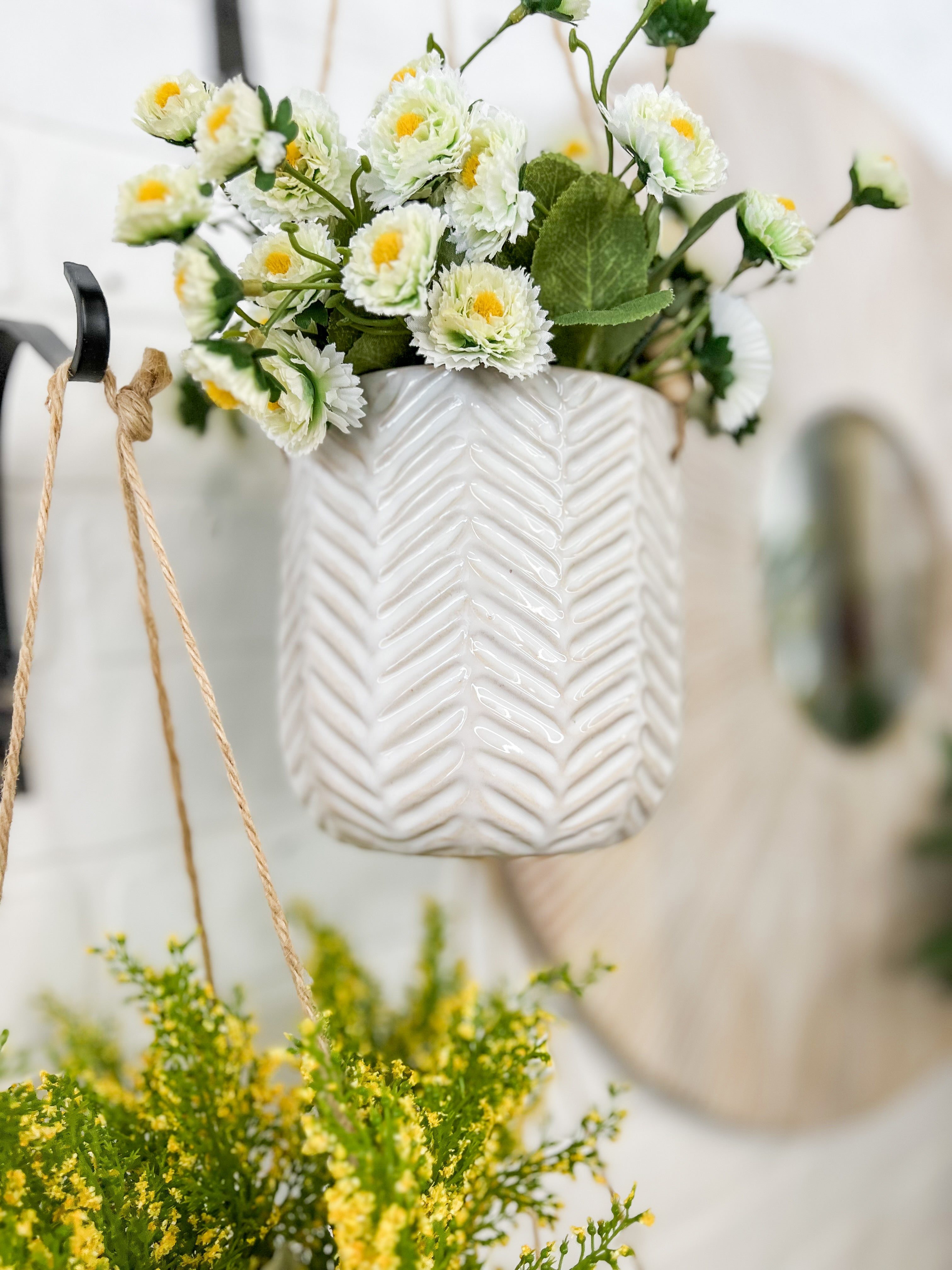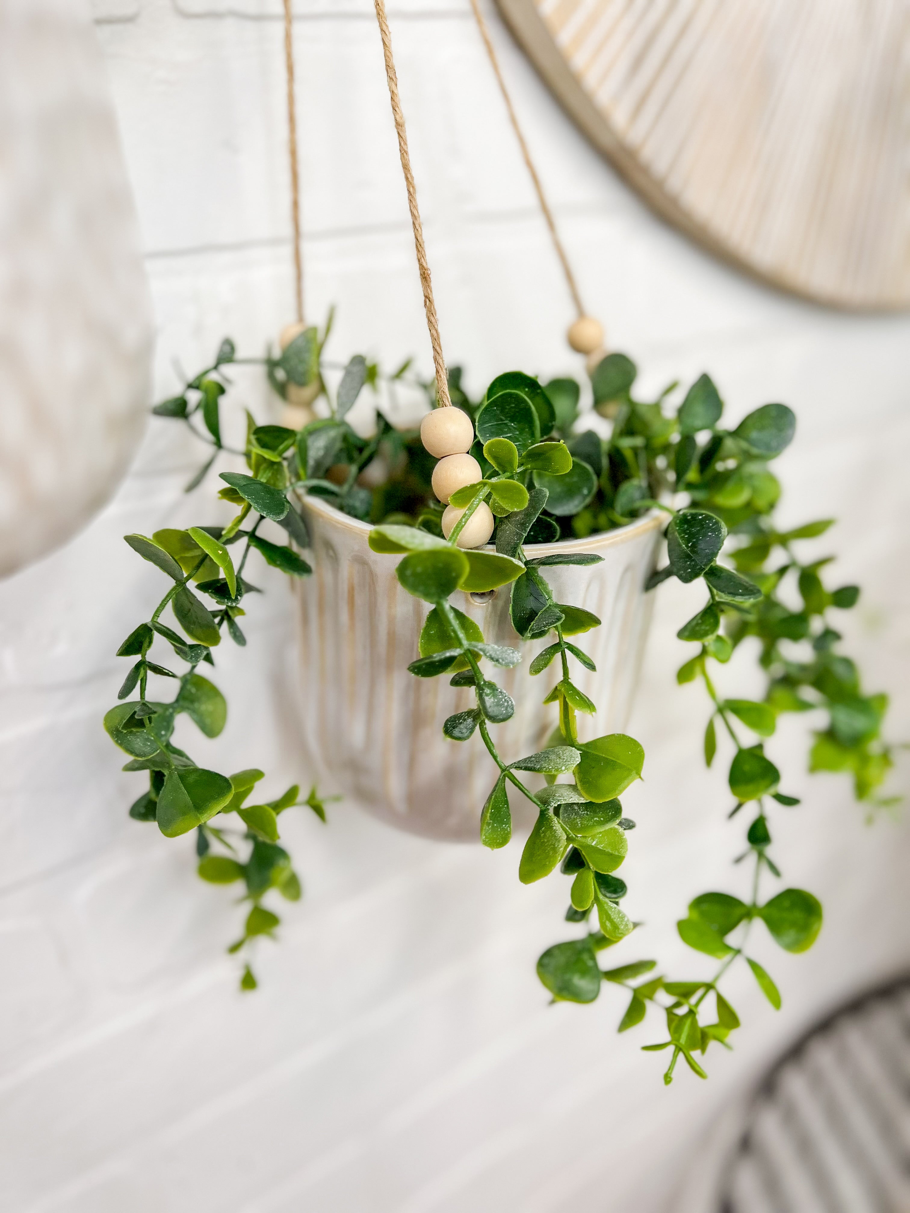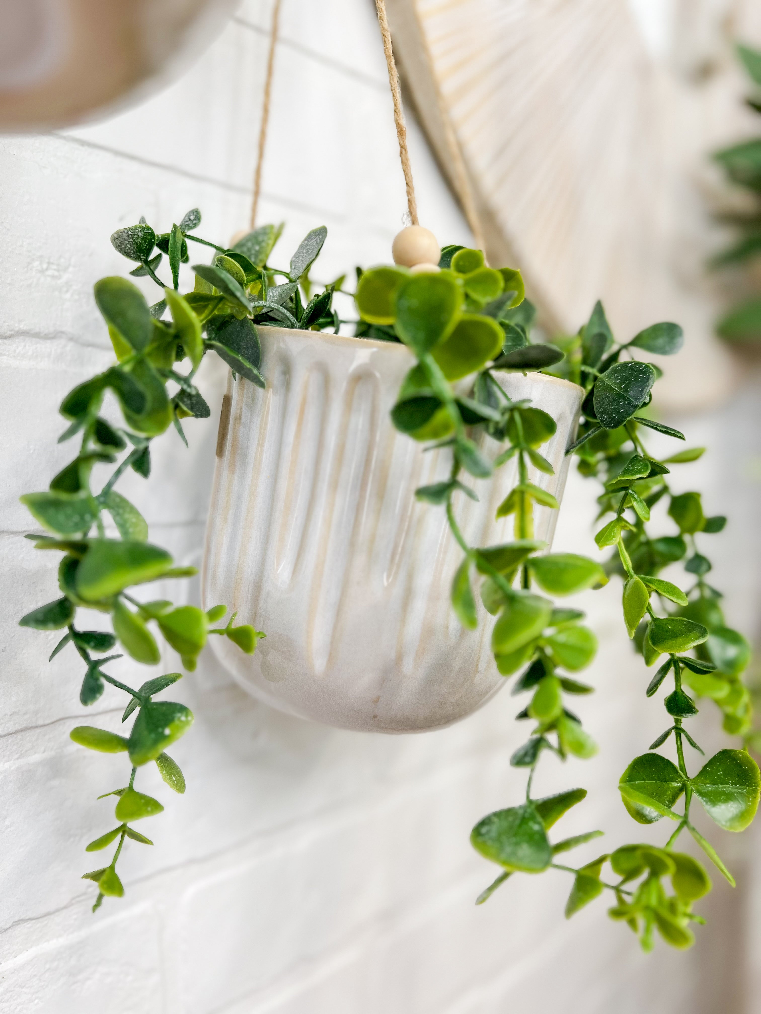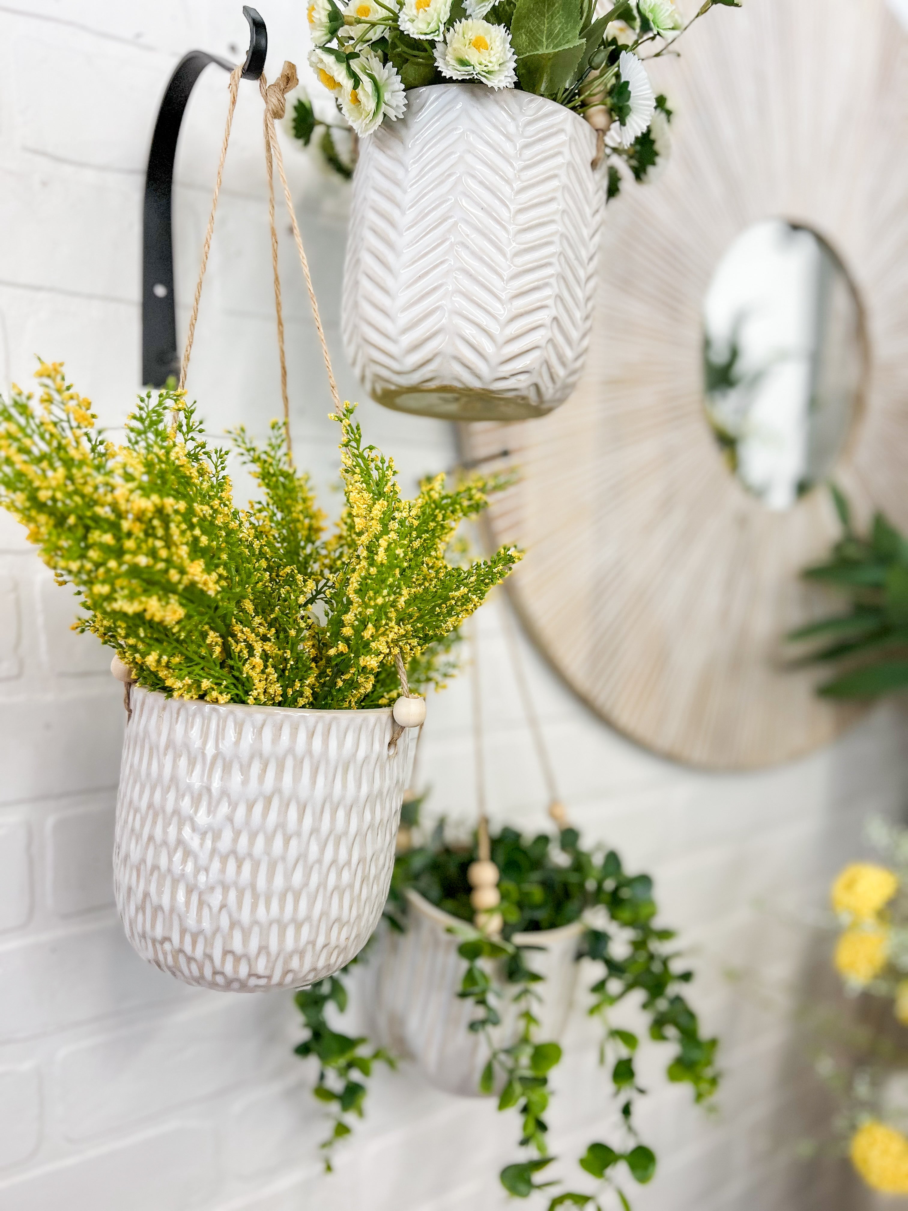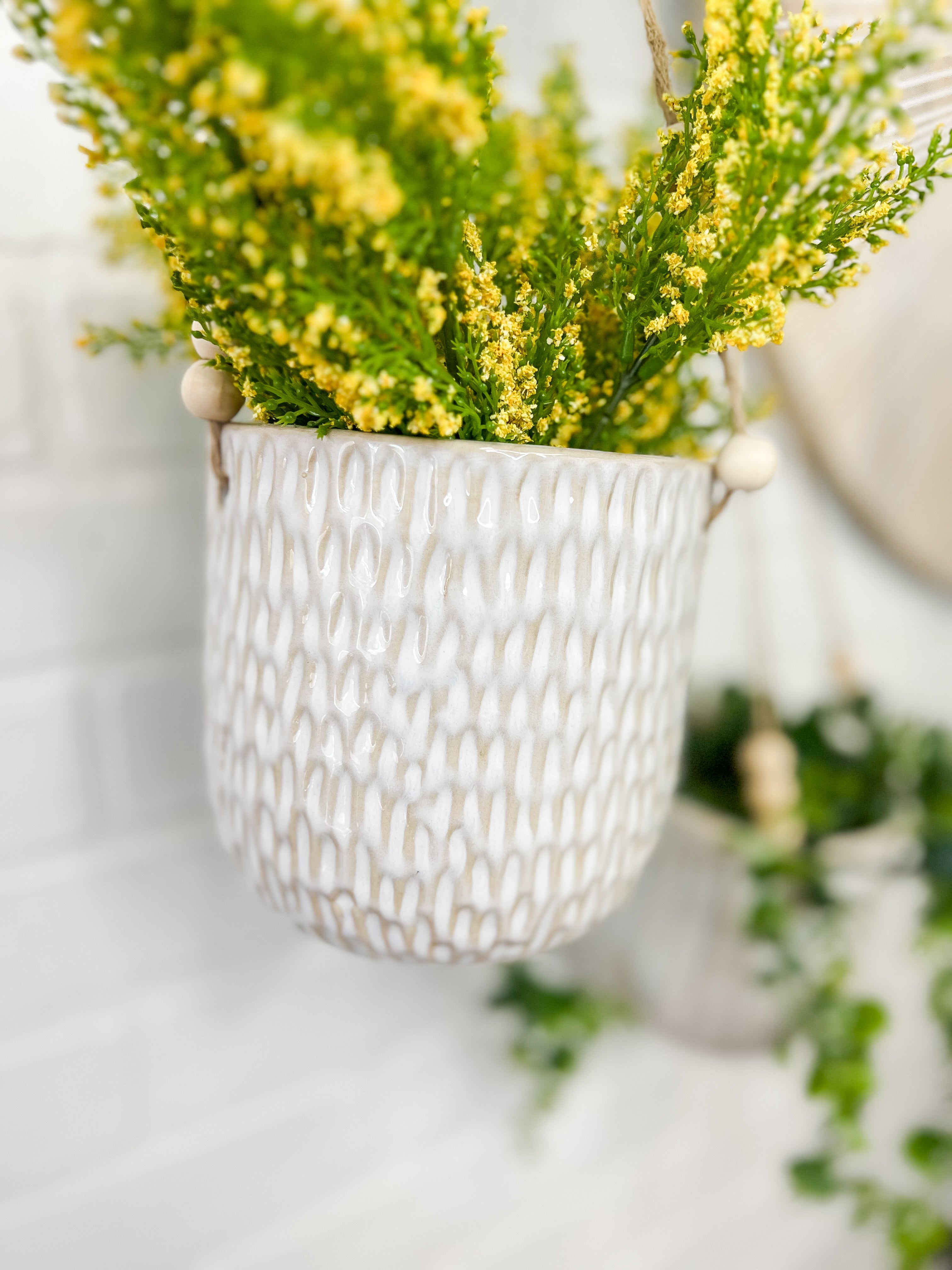 These adorable ceramic hanging planters feature a beaded string and are the perfect size for small stems or potted plants!