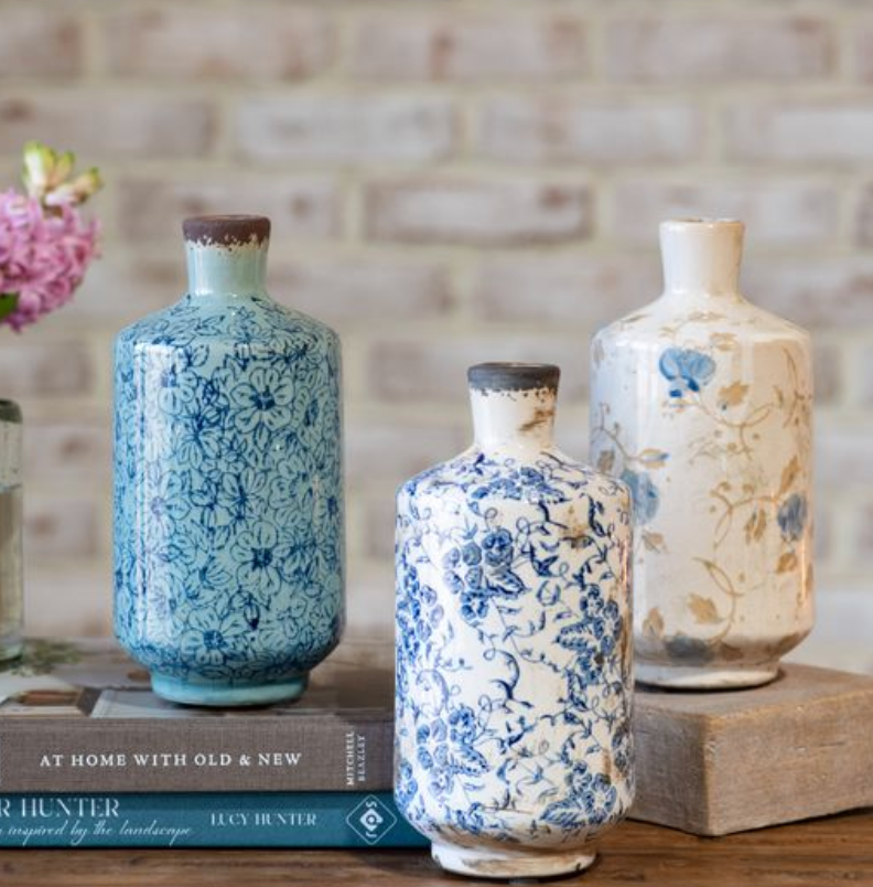 This heirloom-style ceramic vase features a classic rounded silhouette with timeless patterning for a collected, vintage-inspired look. Beautiful styled on its own or layered with books and accents on shelves, consoles or tabletops.