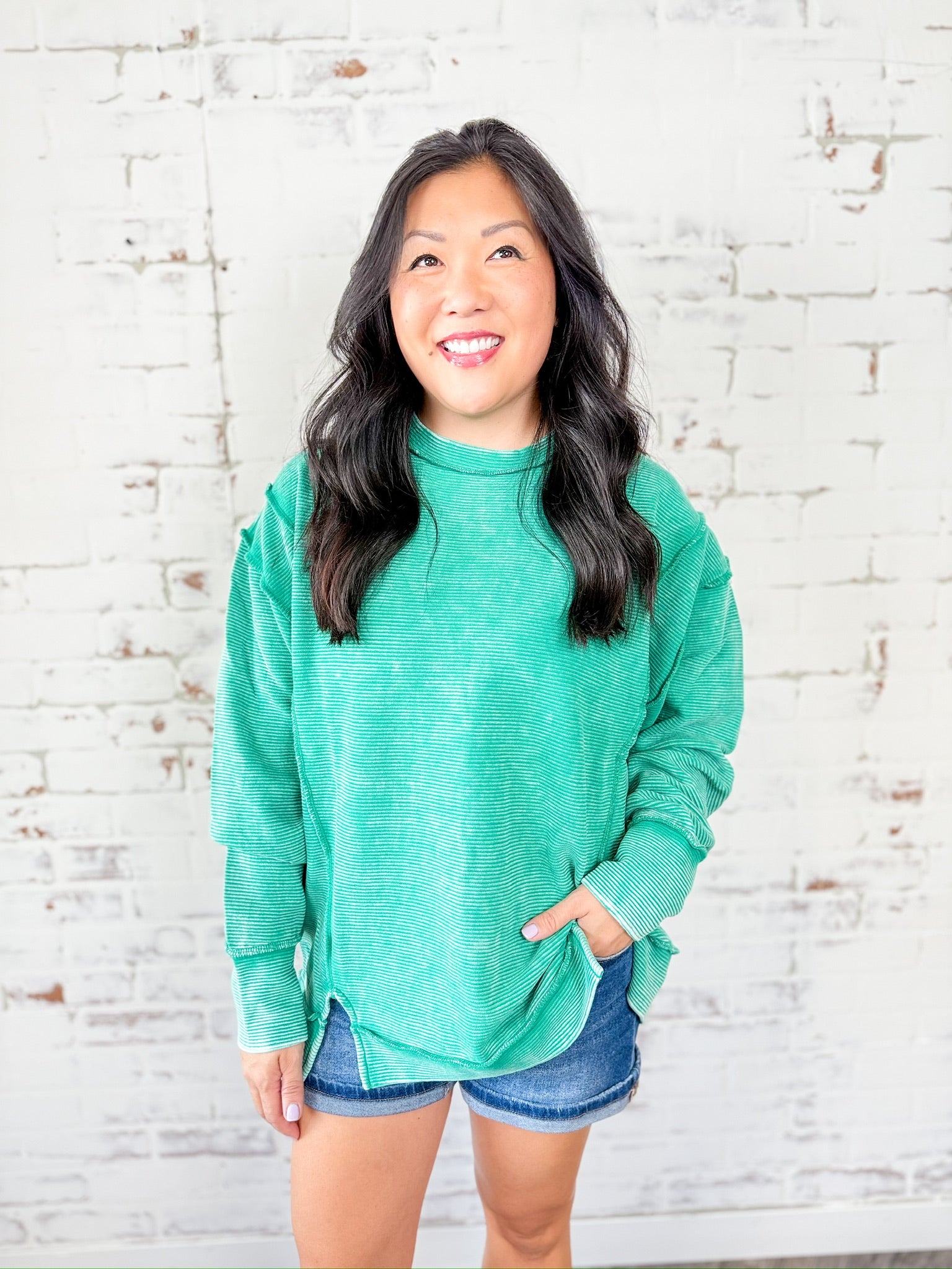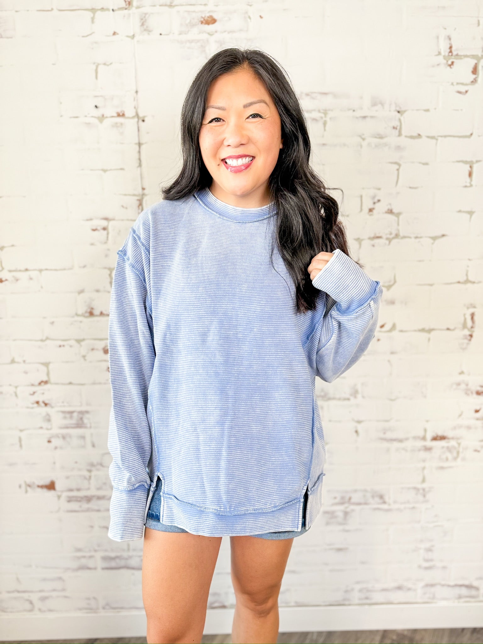 Laid-back comfort meets everyday style in this oversized pullover. With subtle stripes and a relaxed fit, it’s the perfect throw-on-and-go top for busy days.