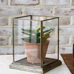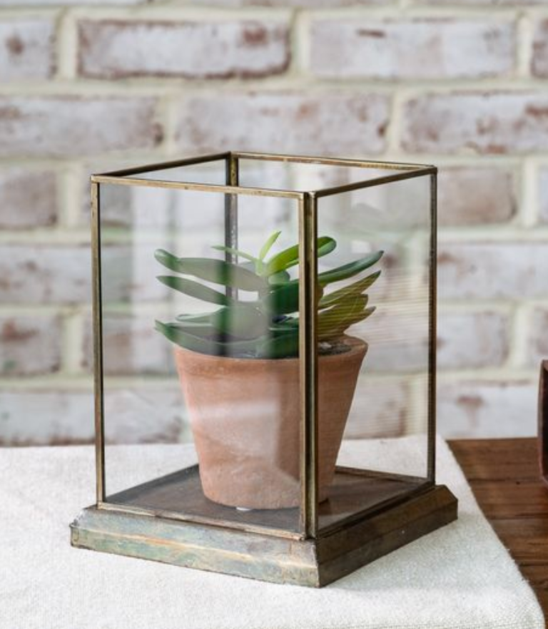Clean lines and warm antique brass framing give this 7.5" glass lantern a refined, versatile look. Its simple cube silhouette makes it easy to style on shelves, side tables or entry consoles with a candle, seasonal filler or decorative accent of your choice.