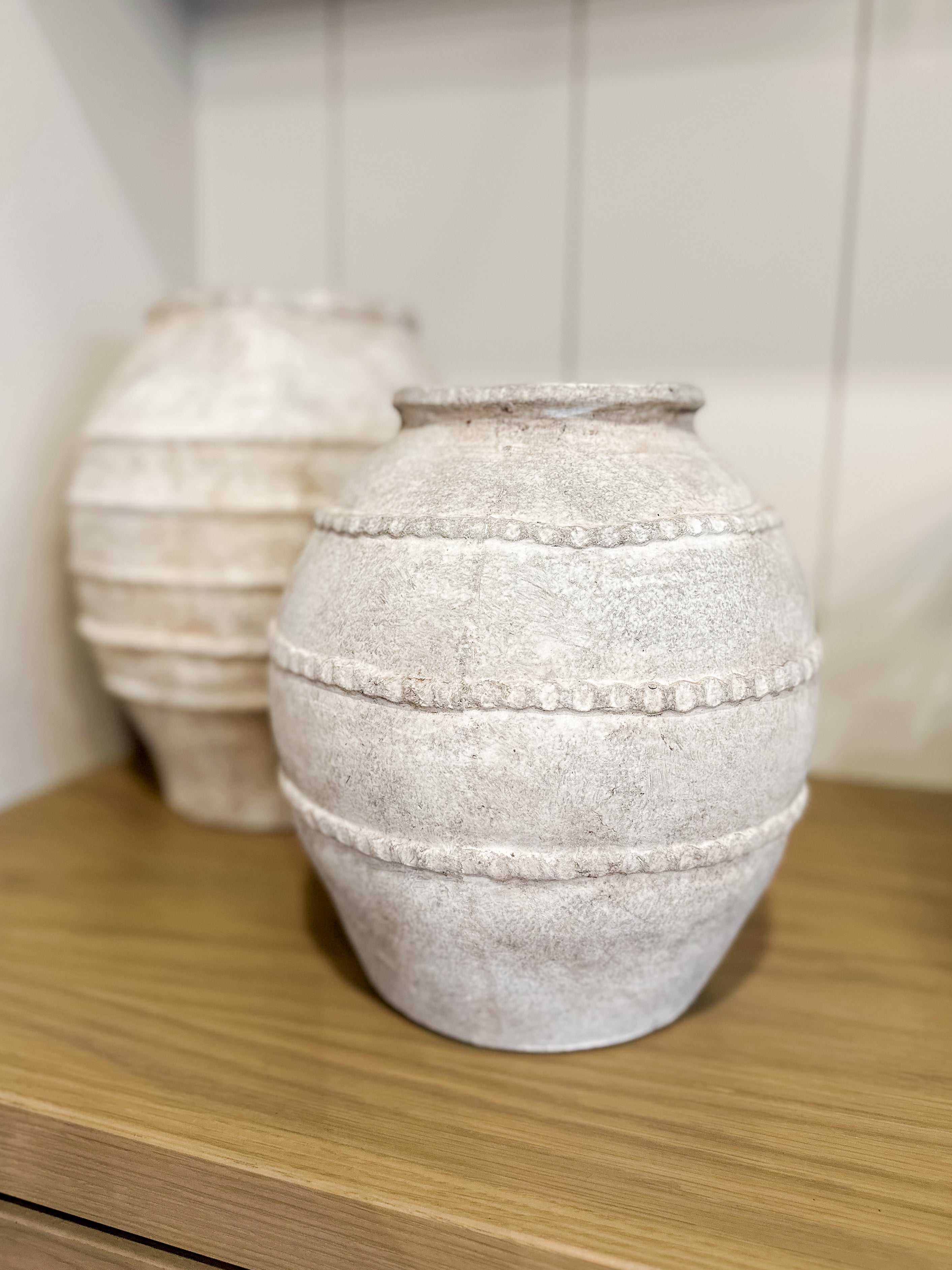 Bring timeless texture to your home with our Textured Stone Vase. This neutral-toned statement piece blends natural charm with handcrafted character, featuring subtle beaded detailing and a weathered stone-like finish. Its versatile design pairs beautifully with greenery, stems, or left empty as an artful accent.
