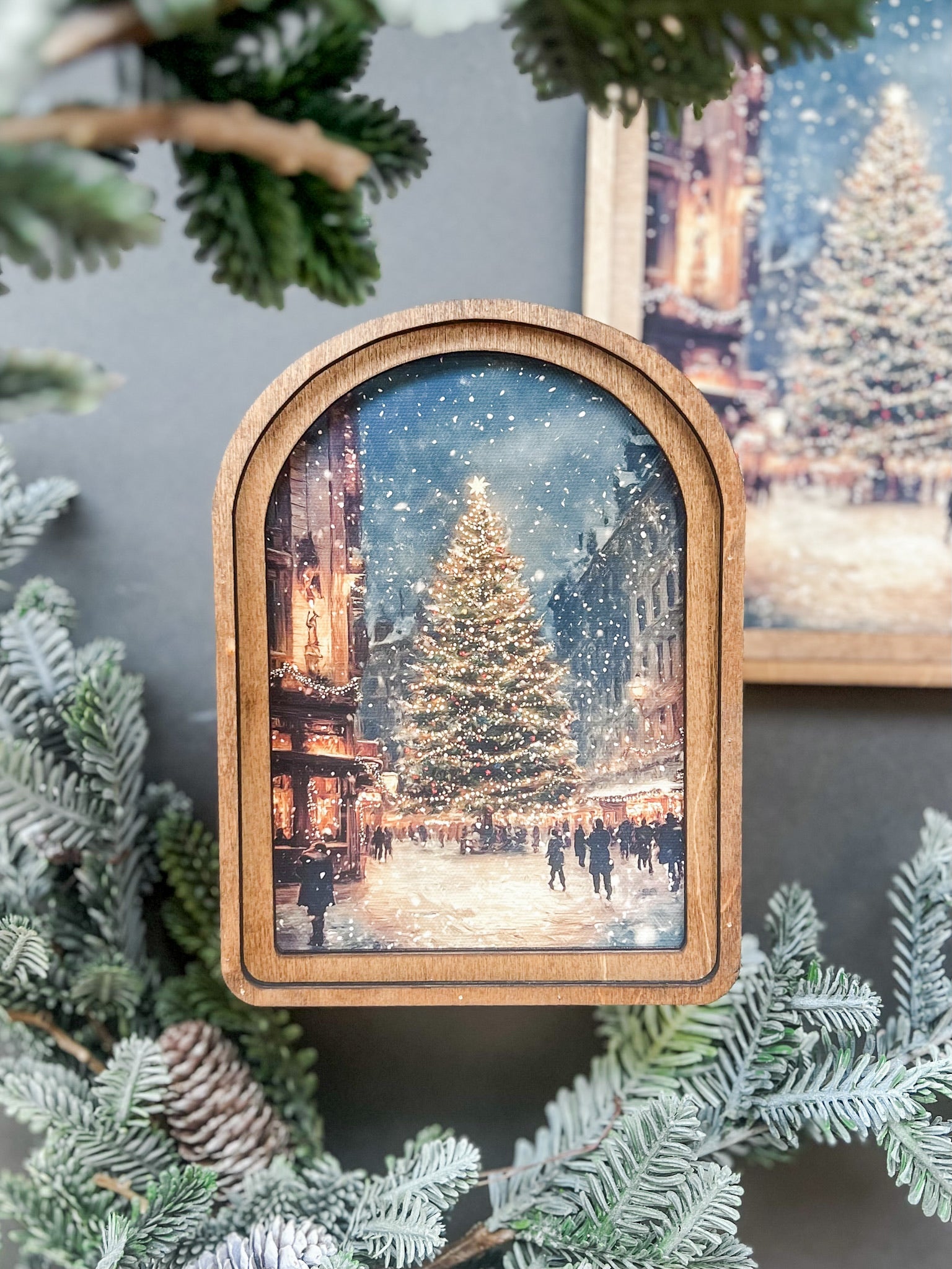 6 x 8" Arch Top Christmas Tree Main Street Framed Art