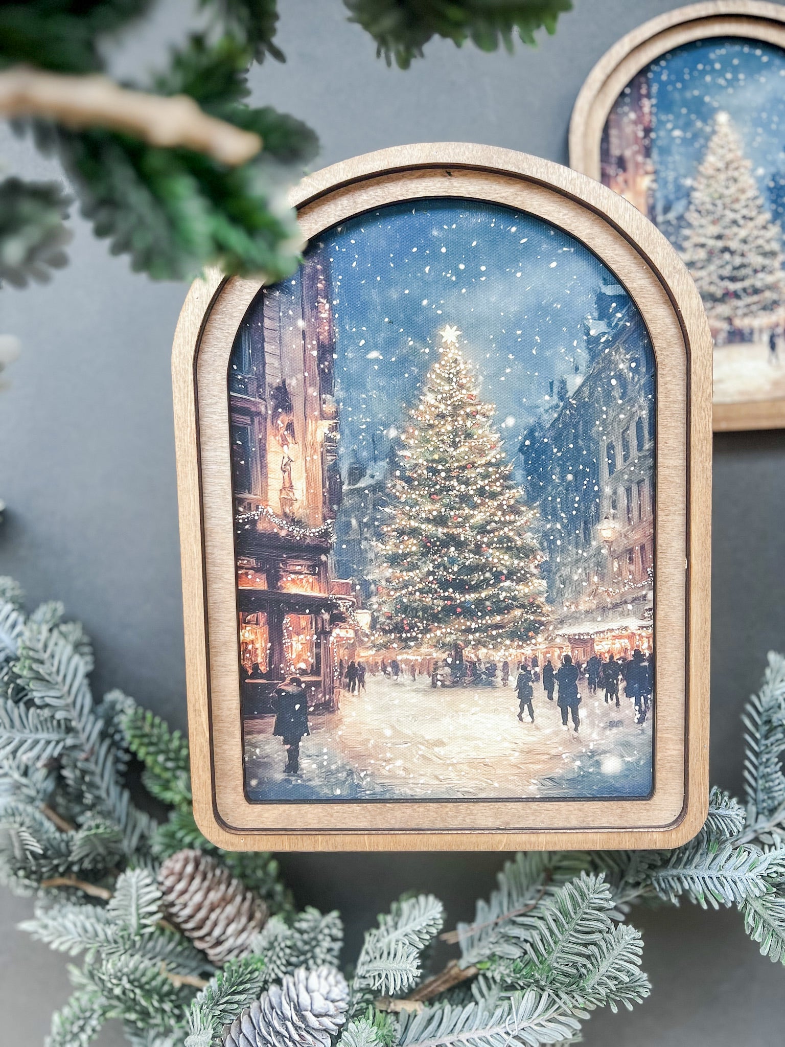 8.25x11" Arch Top Christmas Tree Main Street Framed Art