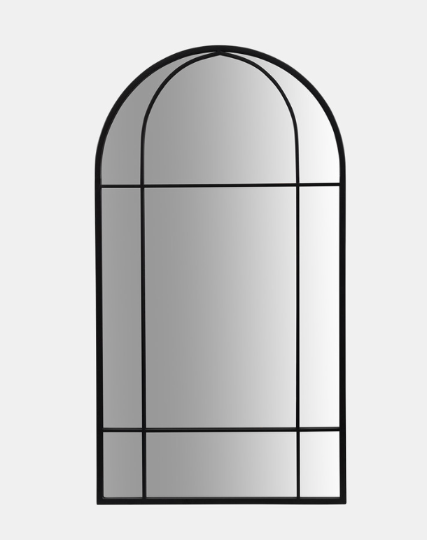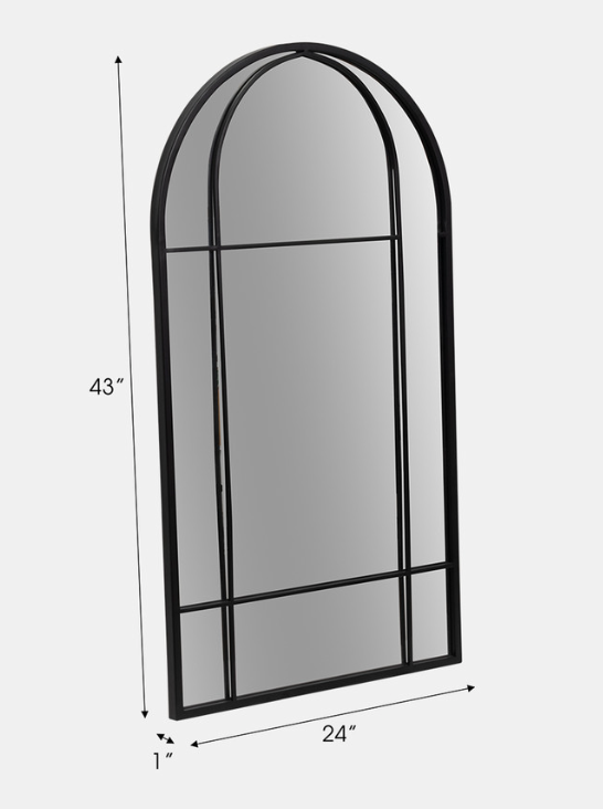 Add architectural interest to your space with this 24x43" arched windowpane mirror. Featuring a sleek black frame and clean grid detailing, this mirror brings a timeless, window-inspired look to entryways, living rooms or bedrooms.