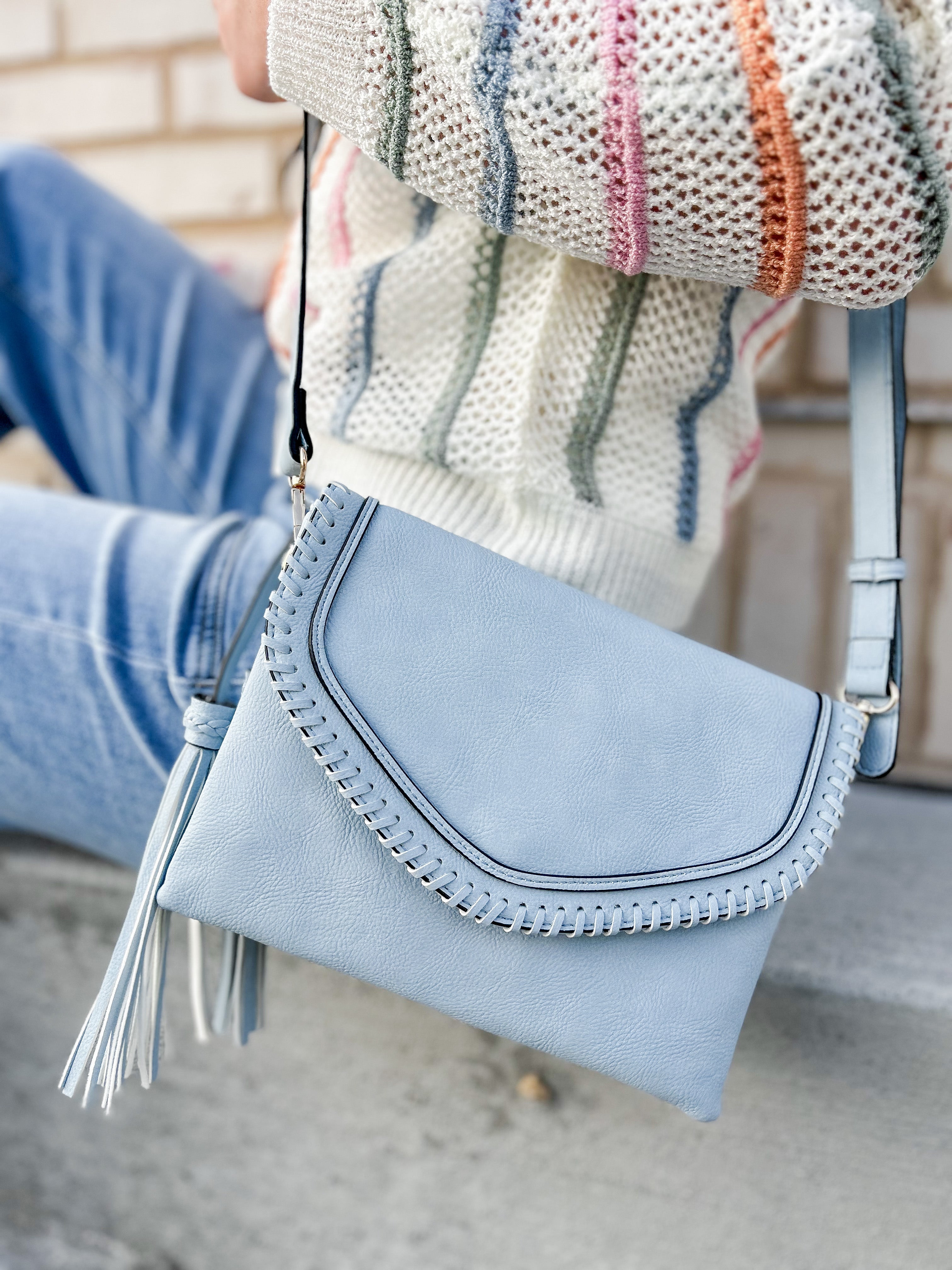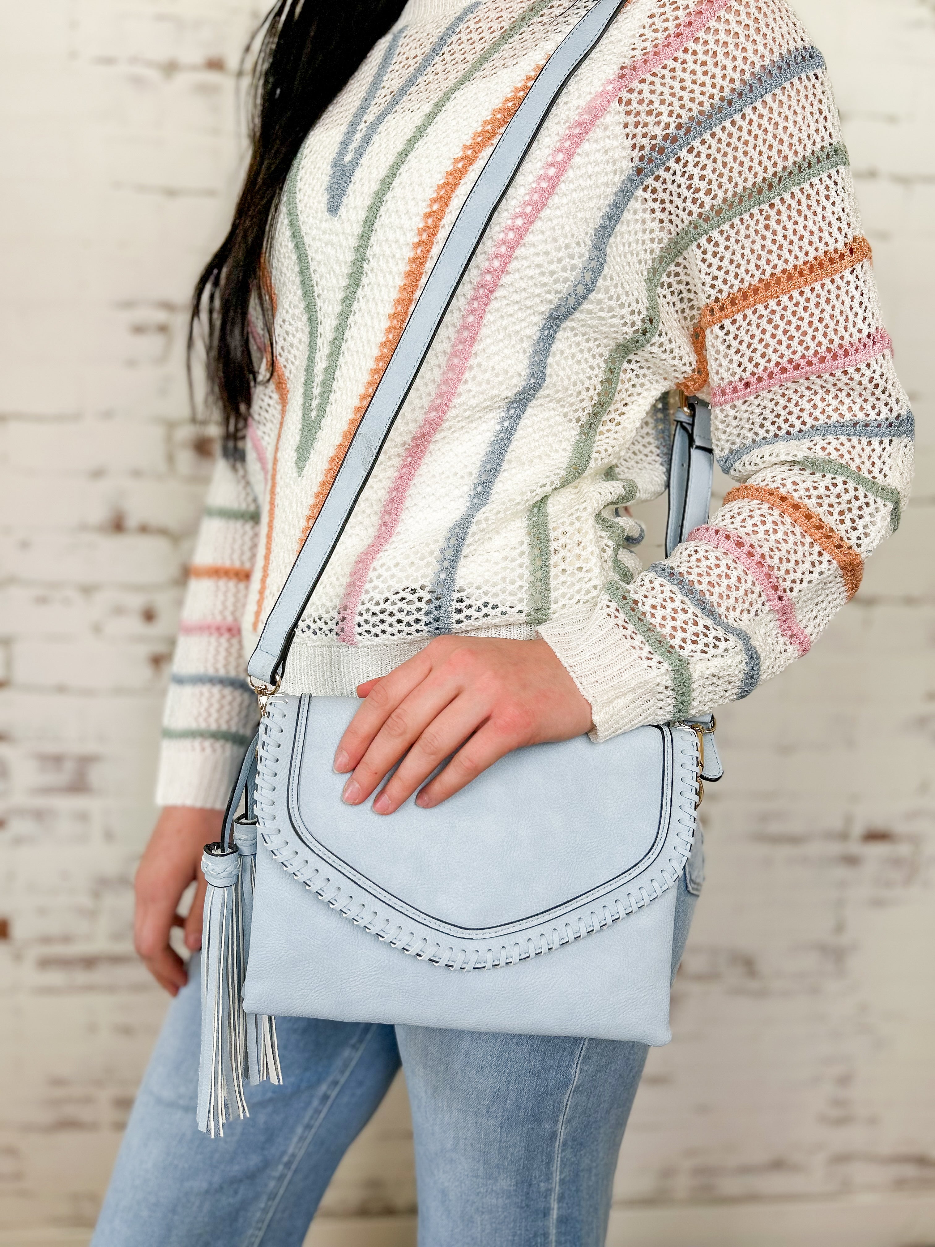 Sloane Flapover Crossbody with Whipstitch and Tassel