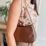 The Chain Reaction Shoulder Bag is a chic little number that makes a big statement. Sleek faux leather pairs beautifully with the bold gold chain strap, giving this bag the perfect balance of polished and edgy. Its compact size keeps things streamlined while still fitting your must-haves—phone, wallet, and keys—making it an easy grab-and-go for day or night.