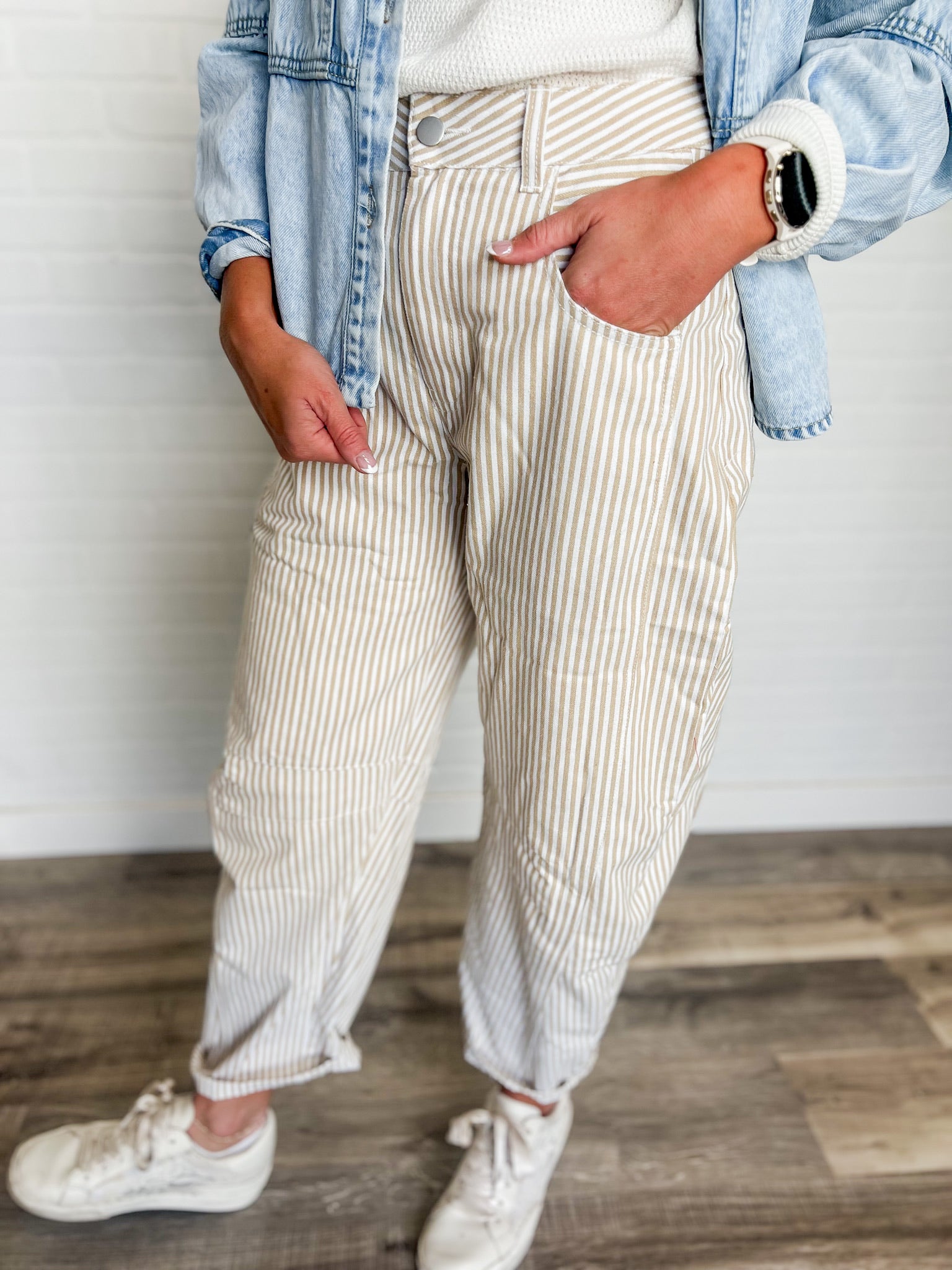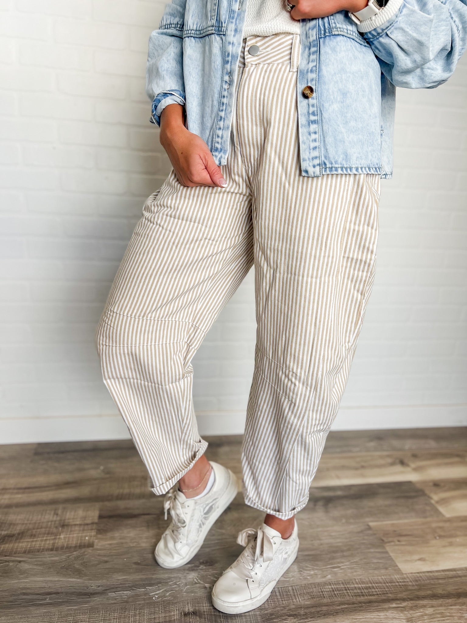 Classic cords with a twist. Our Sand Stripe Cord Pants bring vintage-inspired style and modern comfort together with subtle stripes, a straight-leg fit, and an easy neutral palette. Pair them with a cozy knit or denim shacket for an effortlessly put-together look.