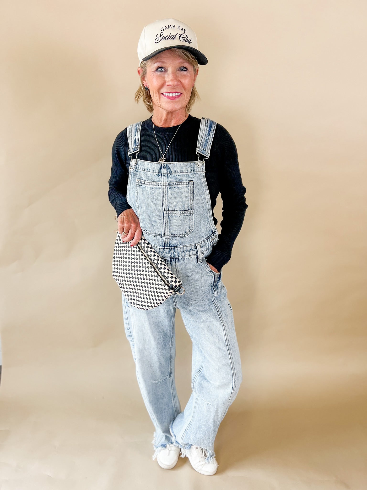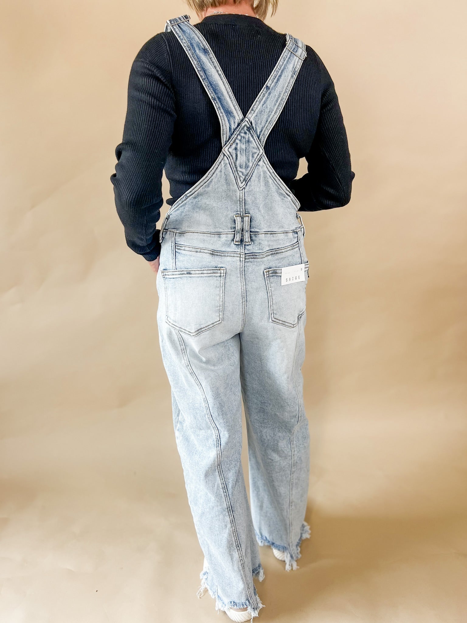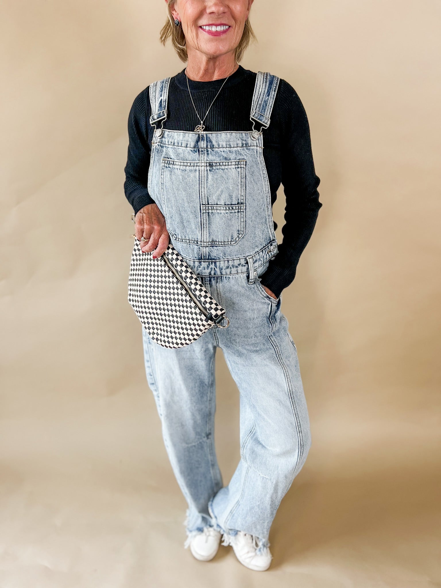 Featuring wide legs with frayed hems, oversized pockets, and adjustable straps for that just-right fit, this jumpsuit is made for layering. Pair it with a ribbed long sleeve or graphic tee and sneakers for an effortlessly casual vibe — or add booties and gold hoops for a chic weekend look.