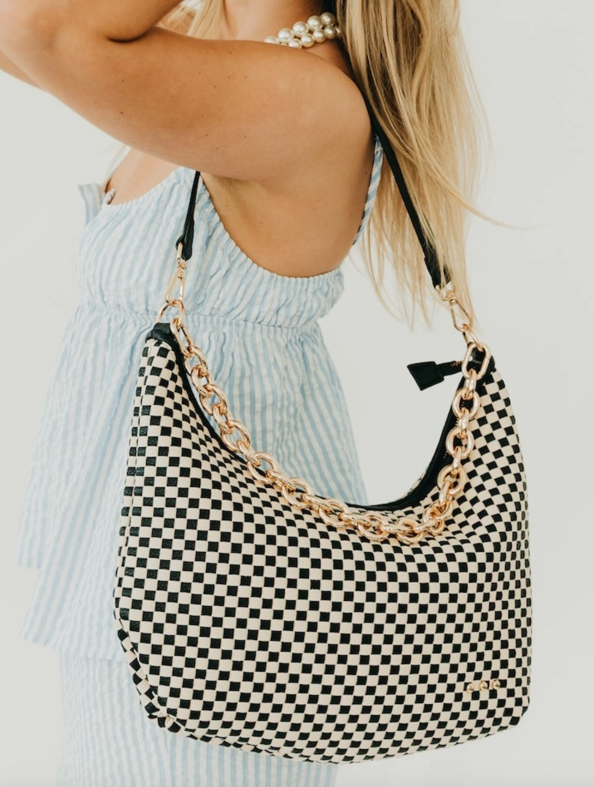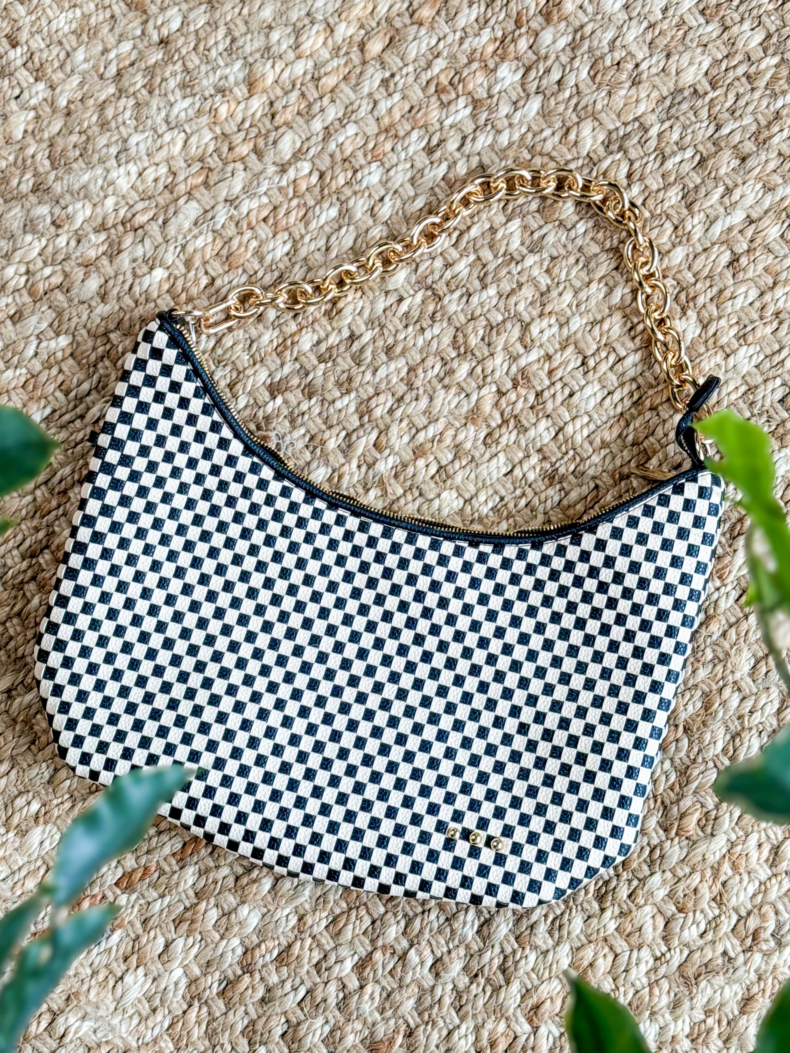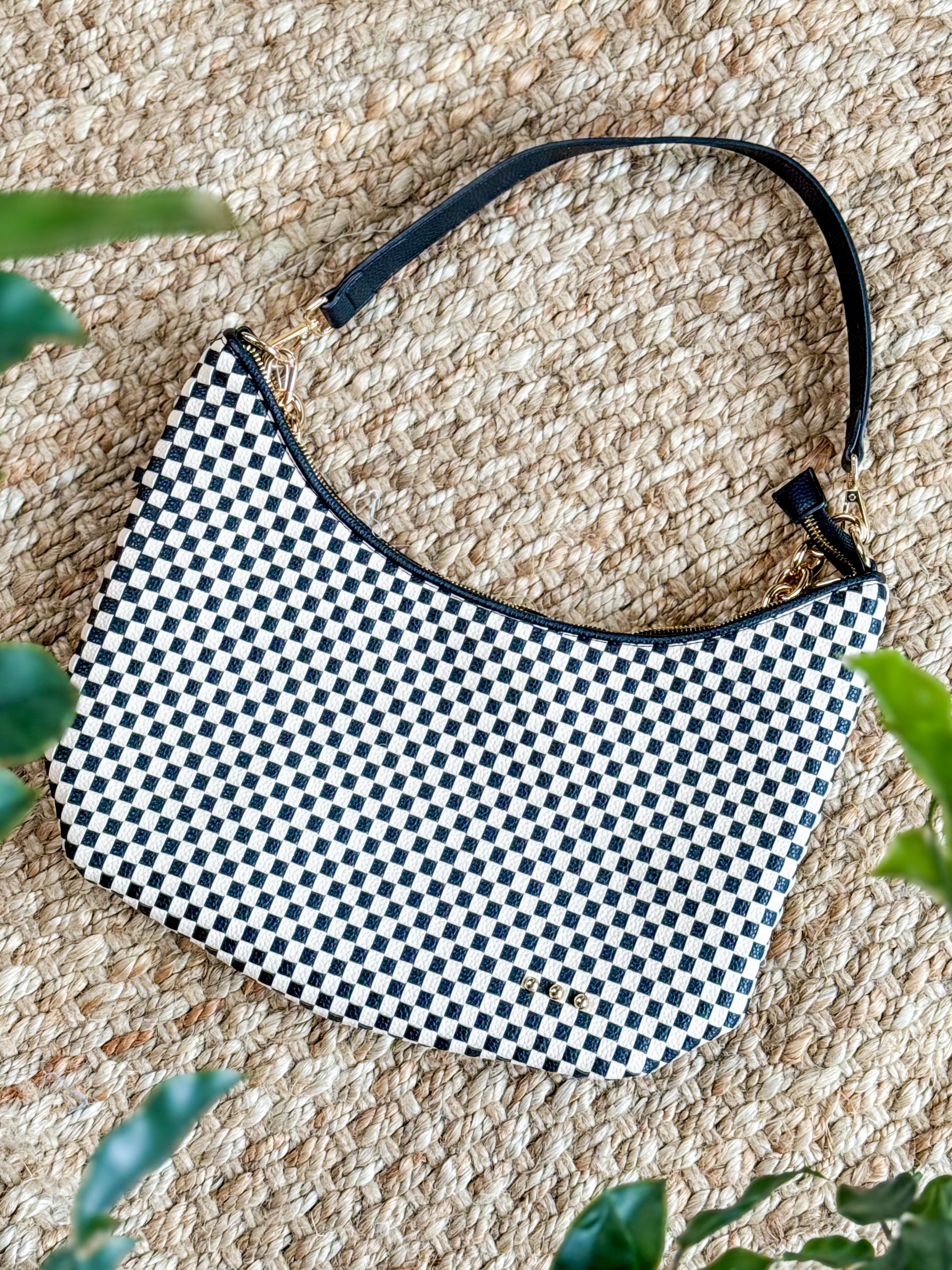 Black Check Woven Shoulder Bag