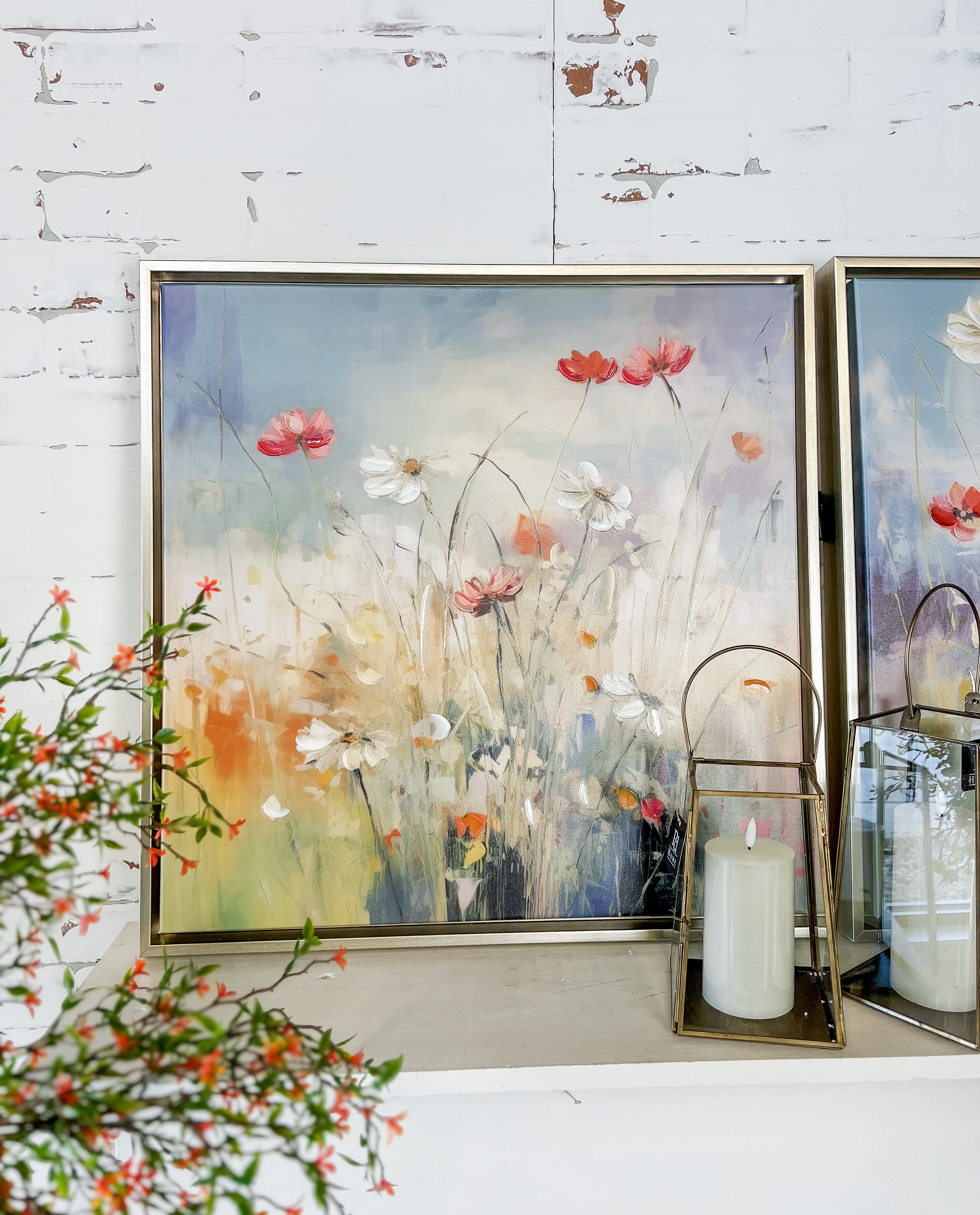 Light, airy and full of movement. This pastel floral canvas brings a gentle pop of color while still feeling calm and relaxed. A beautiful way to brighten a space without going bold.