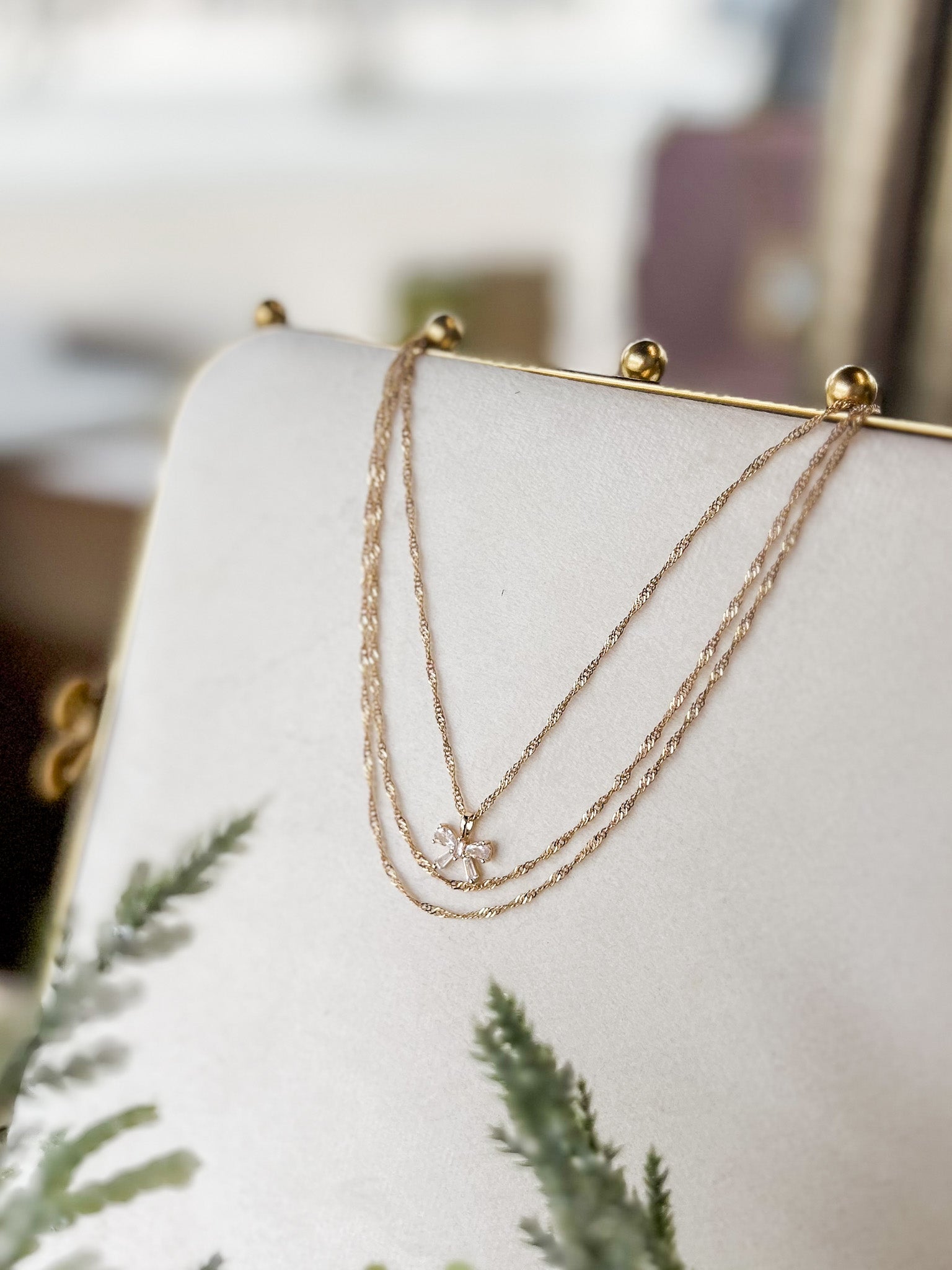 This layered look gives you the perfect pre-styled touch. Featuring a tiny bow charm for that classic, girly finish.