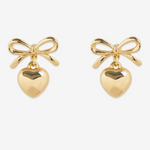 A dainty gold bow meets a classic heart charm in these adorable drop earrings. Lightweight, feminine and easy to wear with everything from holiday outfits to everyday tees. A simple little touch of sweetness for any look.