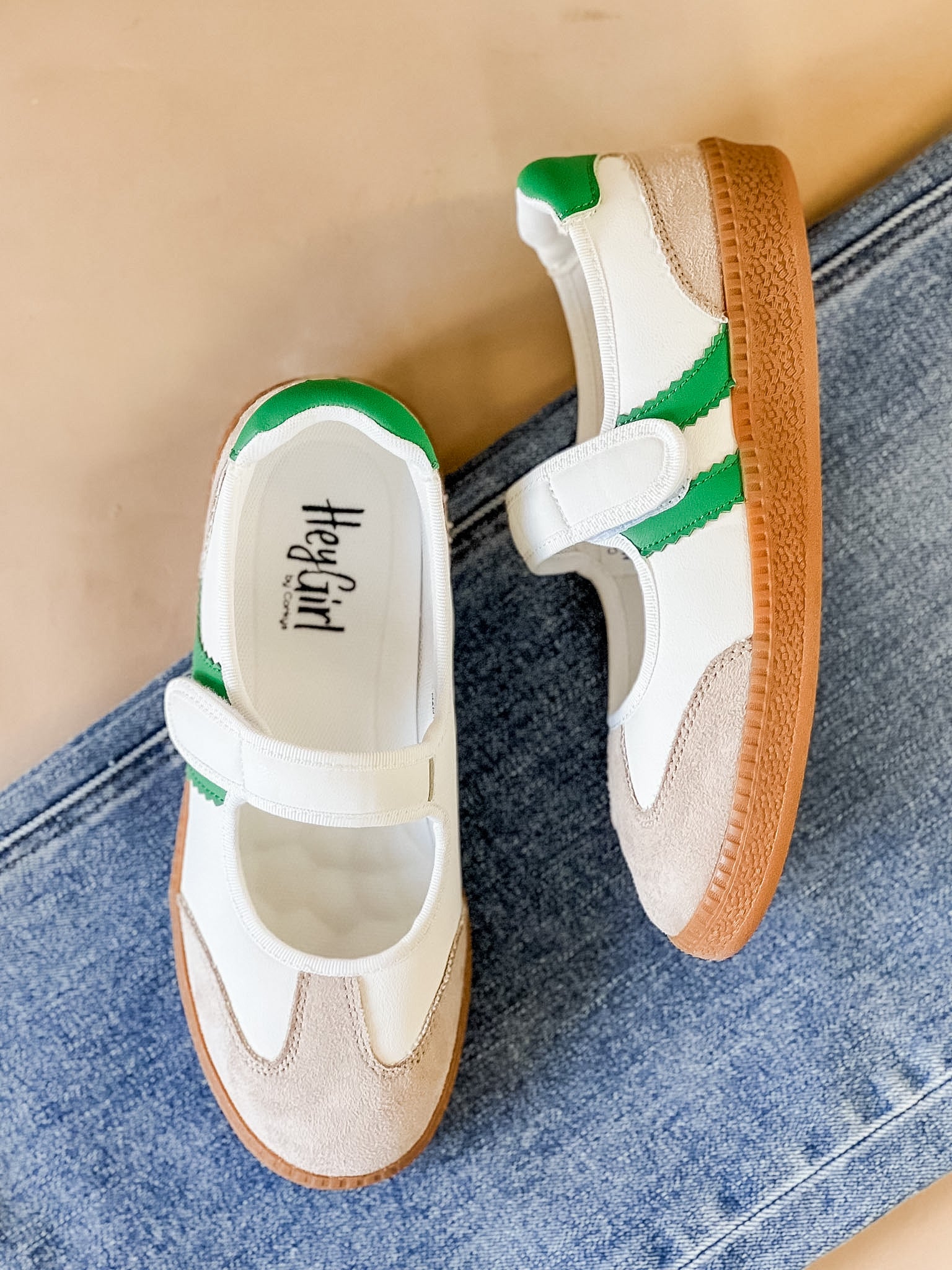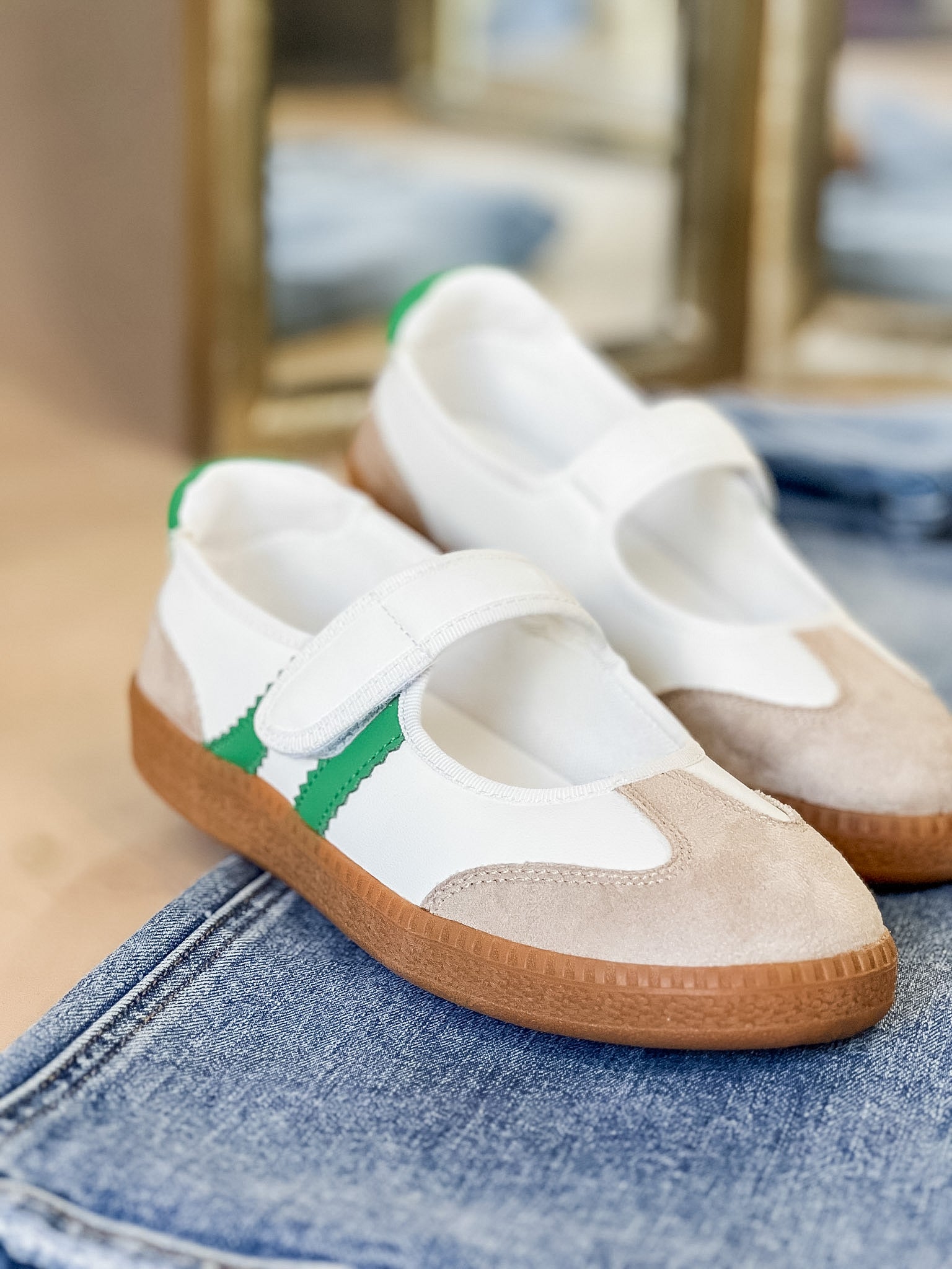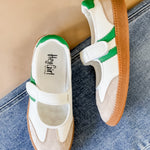 The Retro Court Mary Jane Sneakers bring together sporty style and a playful vintage feel. With a classic sneaker base, gum sole and fresh contrast stripes, they give you that casual athletic look while the Mary Jane strap adds an unexpected twist that feels both trendy and comfortable.