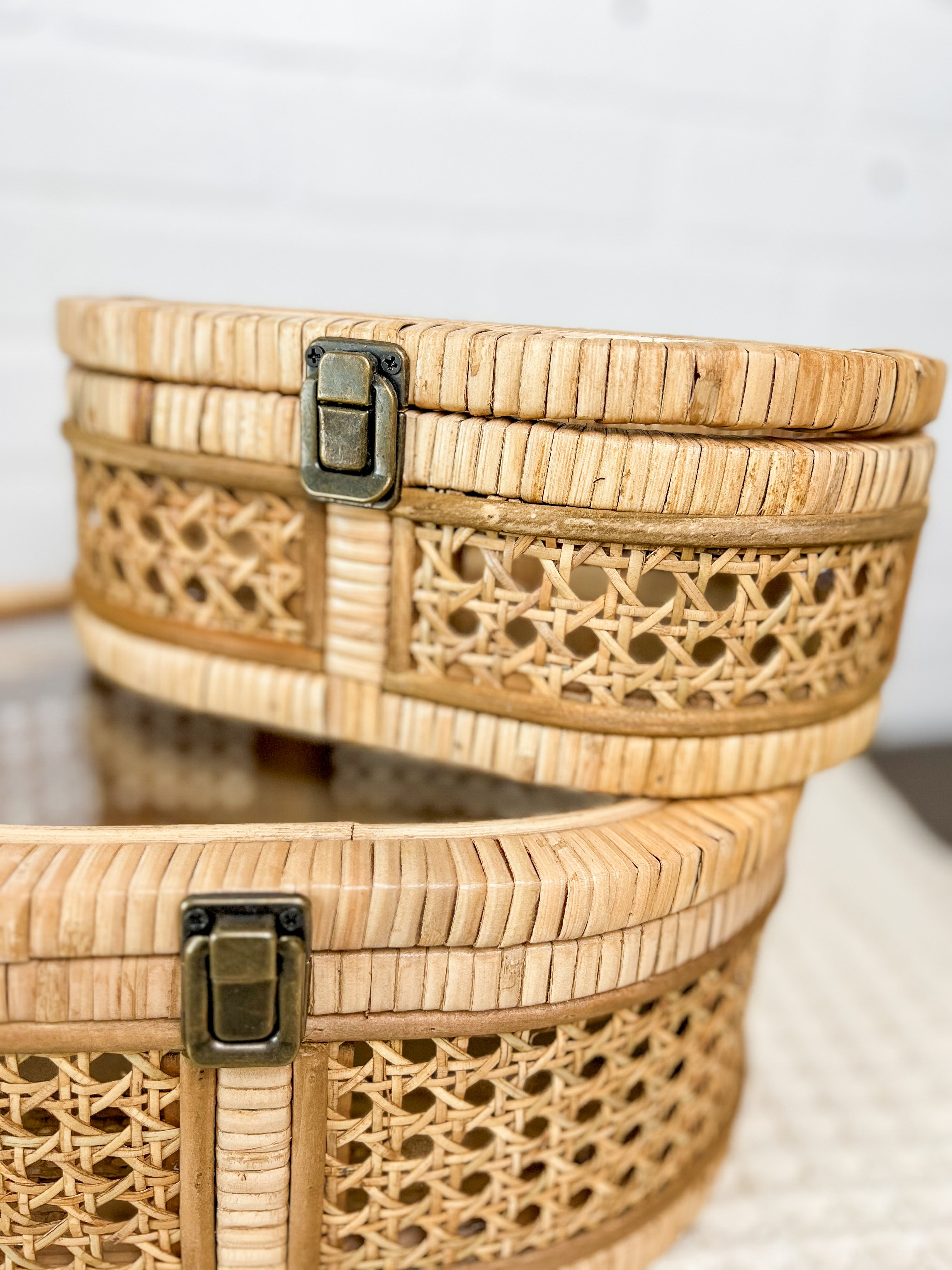 Organize your space with a touch of style with our Cane Boxes. These versatile boxes easily fit on built-in shelves and kitchen shelves, providing both storage and decor. Say goodbye to clutter and hello to organization (with a dash of flair)!